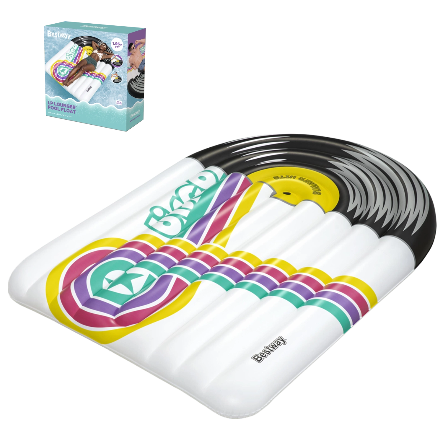 Uživajte u ljetu sa stilom uz nafukavajuću ležaljku Bestway LP Lounger u izgledu vinilne ploče. Velika površina 196 × 145 cm, stabilna I-beam konstrukcija i zaštitni sloj Color Shield za živopisne boje bez otpuštanja boje na kožu. Idealno za opuštanje uz bazen, na jezeru i na moru.