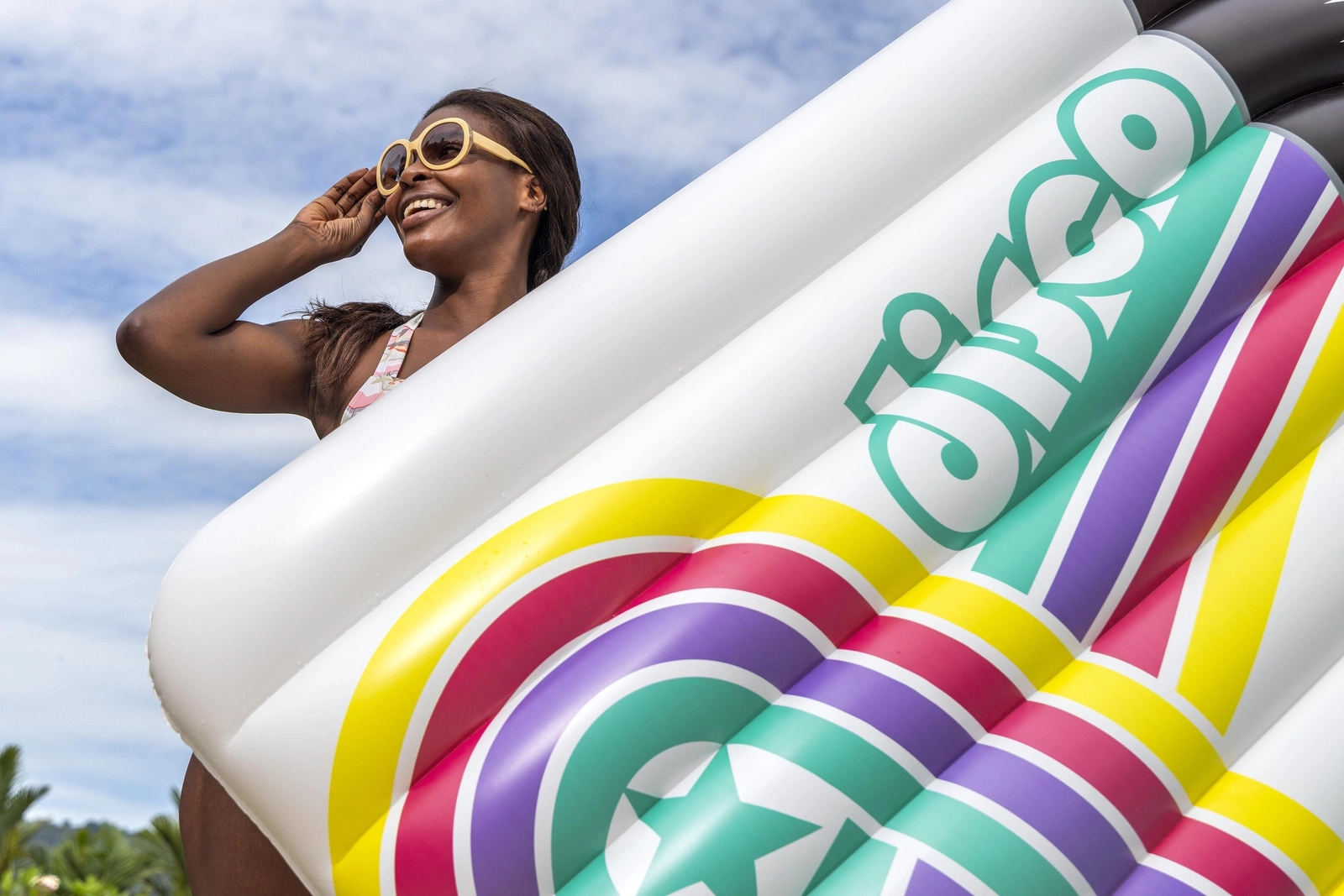 Bestway LP Lounger donosi ikonični retro “disco” dizajn u kombinaciji s modernom izdržljivošću. Zahvaljujući višestrukim zračnim komorama i rebrastoj površini nudi udobno ležanje i sjajnu plovnu stabilnost za jednu odraslu osobu. Zaštitna tehnologija Color Shield pomaže zadržati intenzivne boje te ujedno sprječava prijenos boje na mokru kožu.