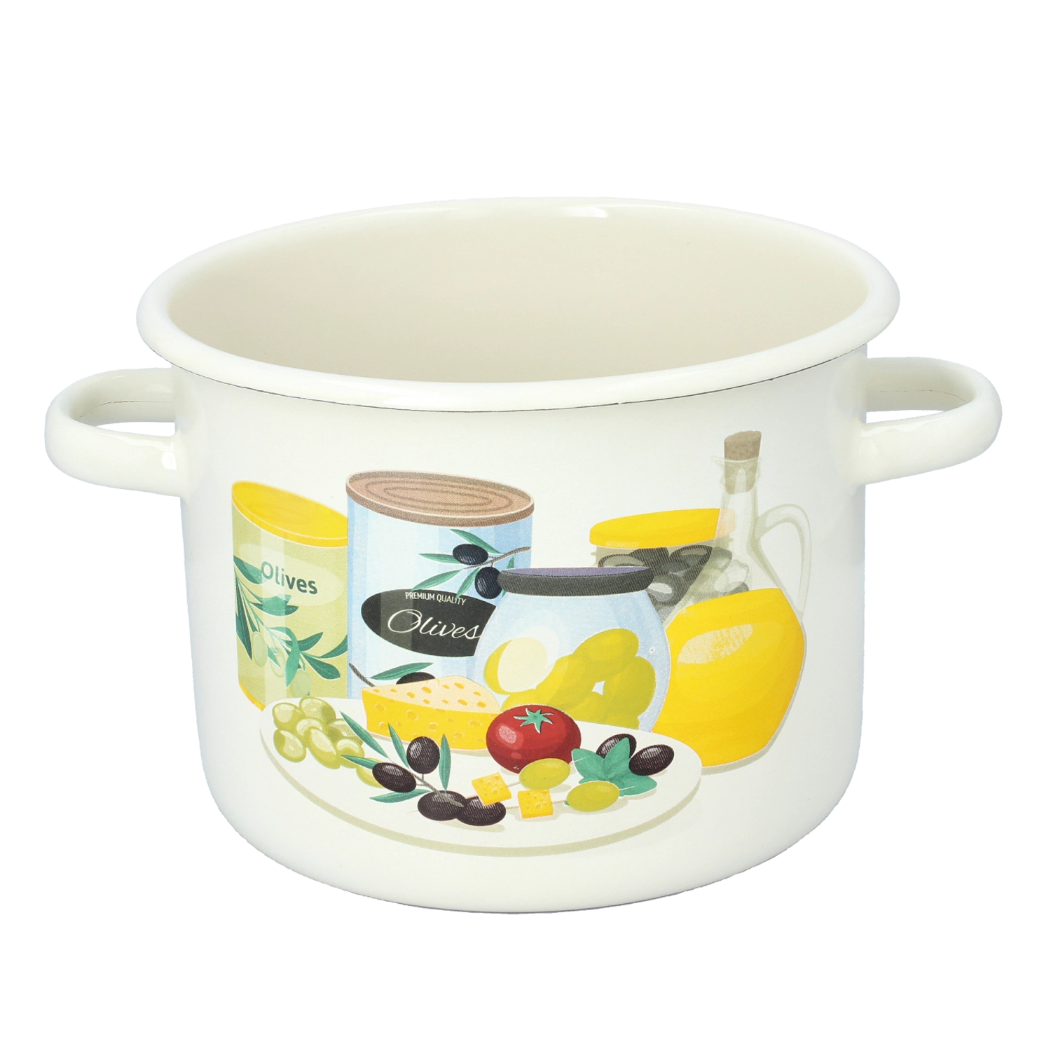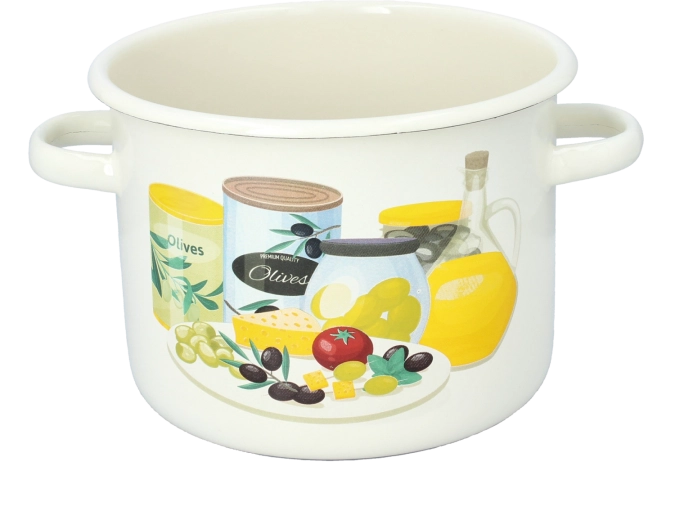 Praktičan emajlirani lonac zapremine 4,5 l i promjera 20 cm u elegantnoj krem boji s dekorativnim motivom maslina. Ističe se izdržljivošću, lakim održavanjem i idealan je za kuhanje većih porcija svakodnevnih jela.