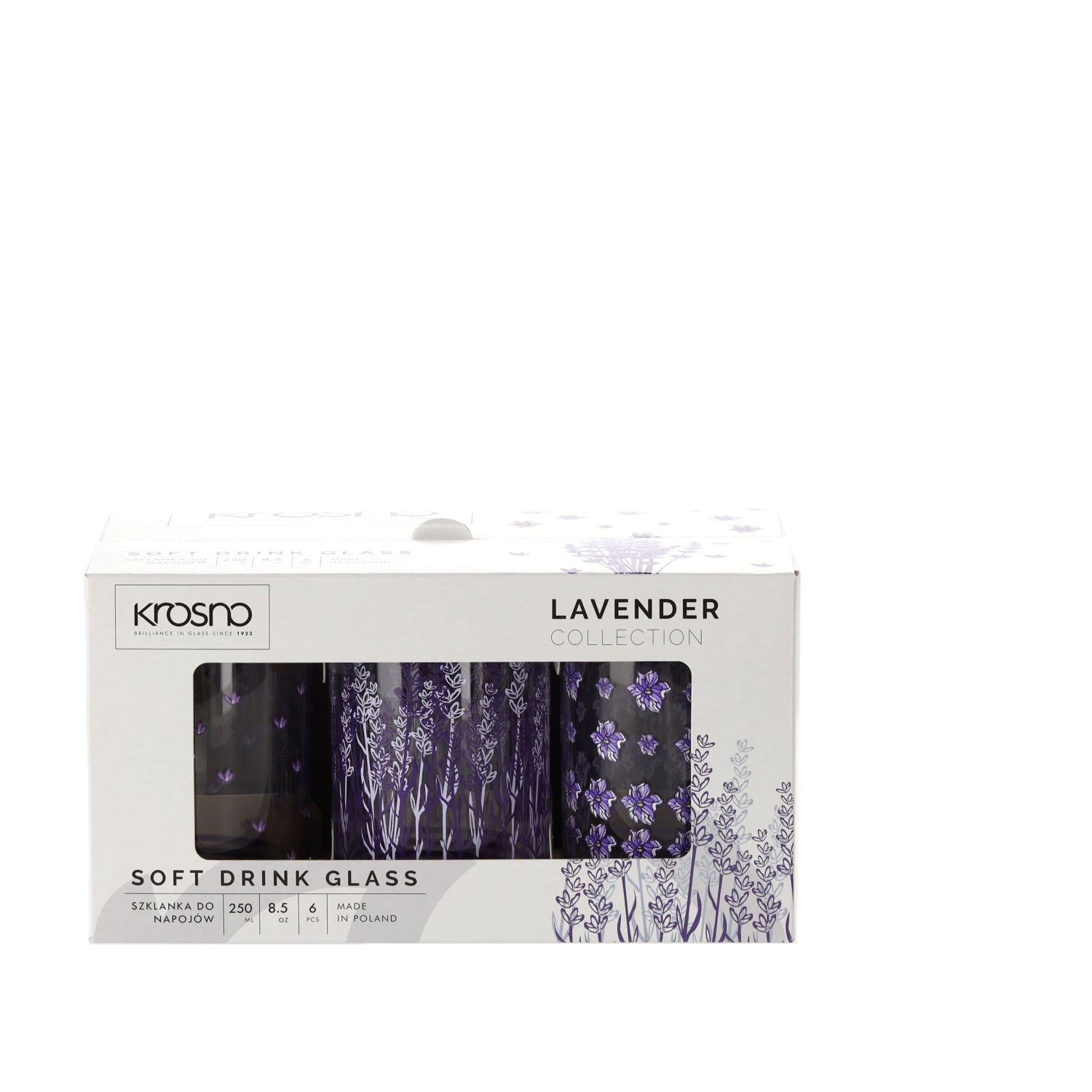 Set čaša Krosno Lavender ističe se kombinacijom klasičnog oblika i nježnog ljubičastog dekora. Prozirno staklo visokog sjaja naglašava izgled napitka, bilo da poslužujete kavu, čaj, vodu ili limunadu. Robusno dno i ugodan hvat osiguravaju udobnu i sigurnu upotrebu svaki dan.