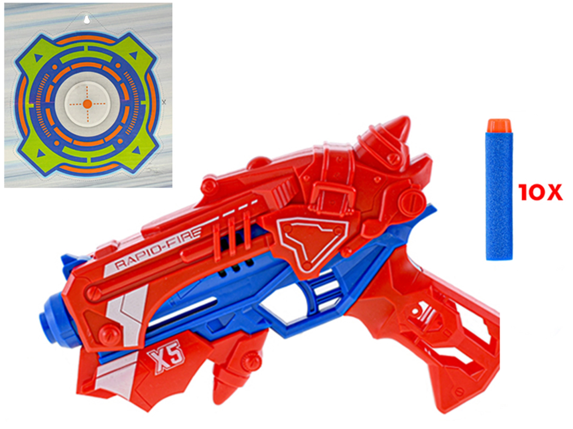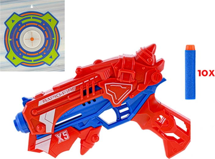 - 1 pištolj, 10 pjenastih metaka, 1 meta