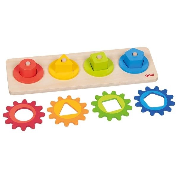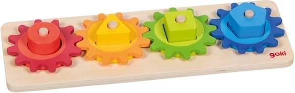Ova drvena motorička igračka kombinira umetanje i sortiranje obojenih oblika s okretanjem povezanih zupčanika. Djeca tijekom igre prirodno istražuju princip uzroka i posljedice – okrenu jedan kotačić, a ostali se pokreću. Na zabavan način tako razvijaju spretnost, strpljenje i prostornu percepciju.