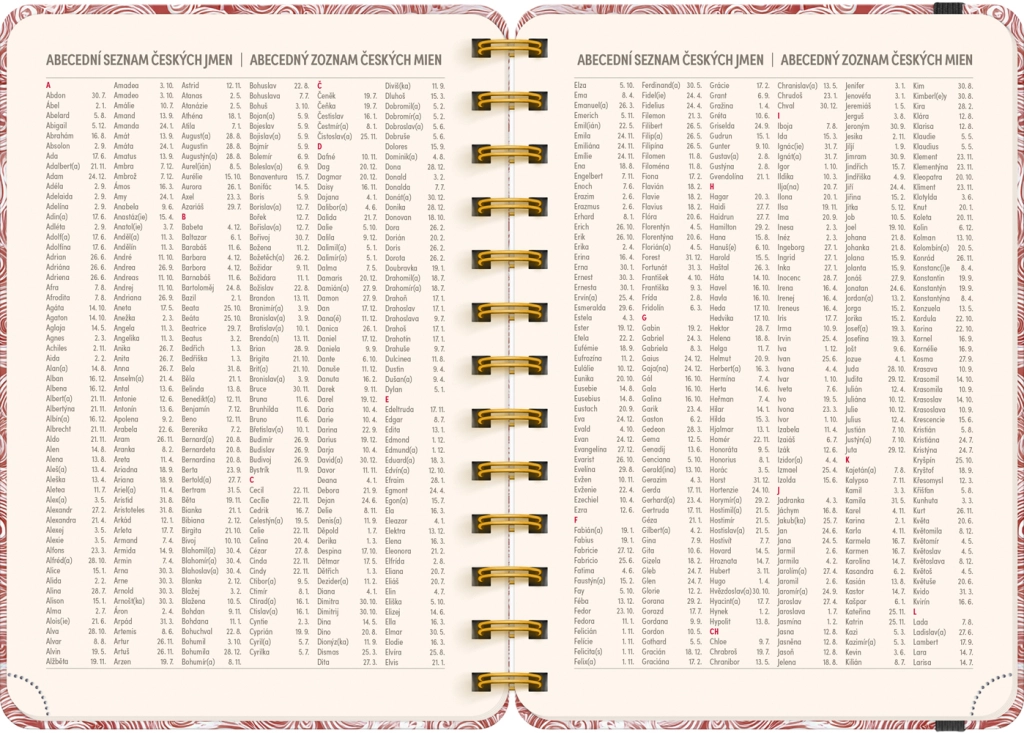 - Tjedni linijski kalendarij: češko‑slovački, s imenima i blagdanima/imendanima