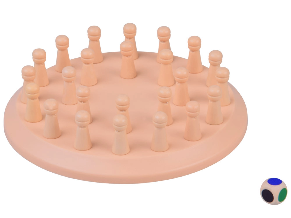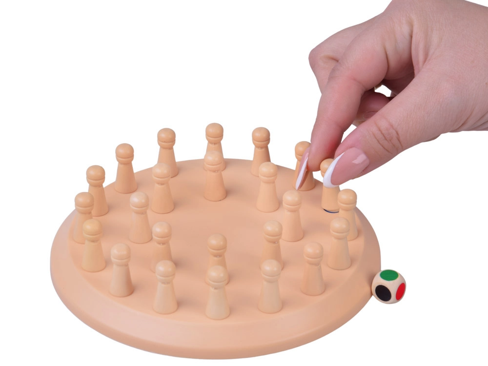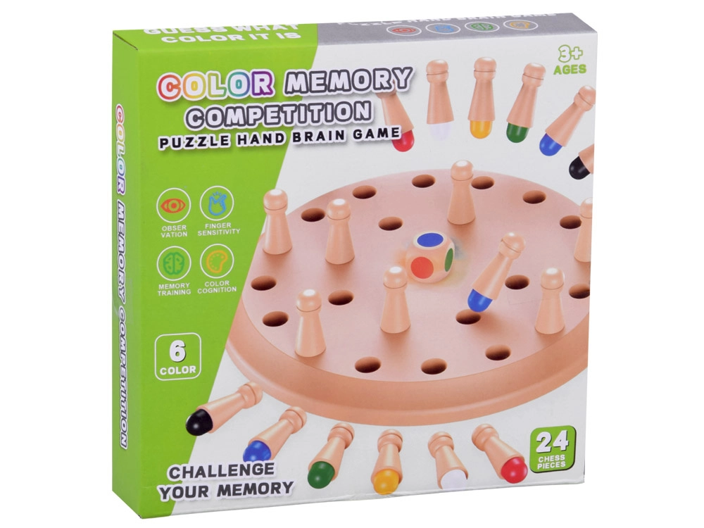 Drvena kružna ploča s otvorima i štapićima skriva boje koje si igrači moraju zapamtiti. Nakon bacanja šarene kocke pokušavaju otkriti štapić koji odgovara boji. Ako je odabir točan, štapić osvajaju, ako nije, vraća se natrag – na redu je sljedeći igrač. Igra je izvrsna za razvoj vizualnog pamćenja, povezivanja i fine motorike.