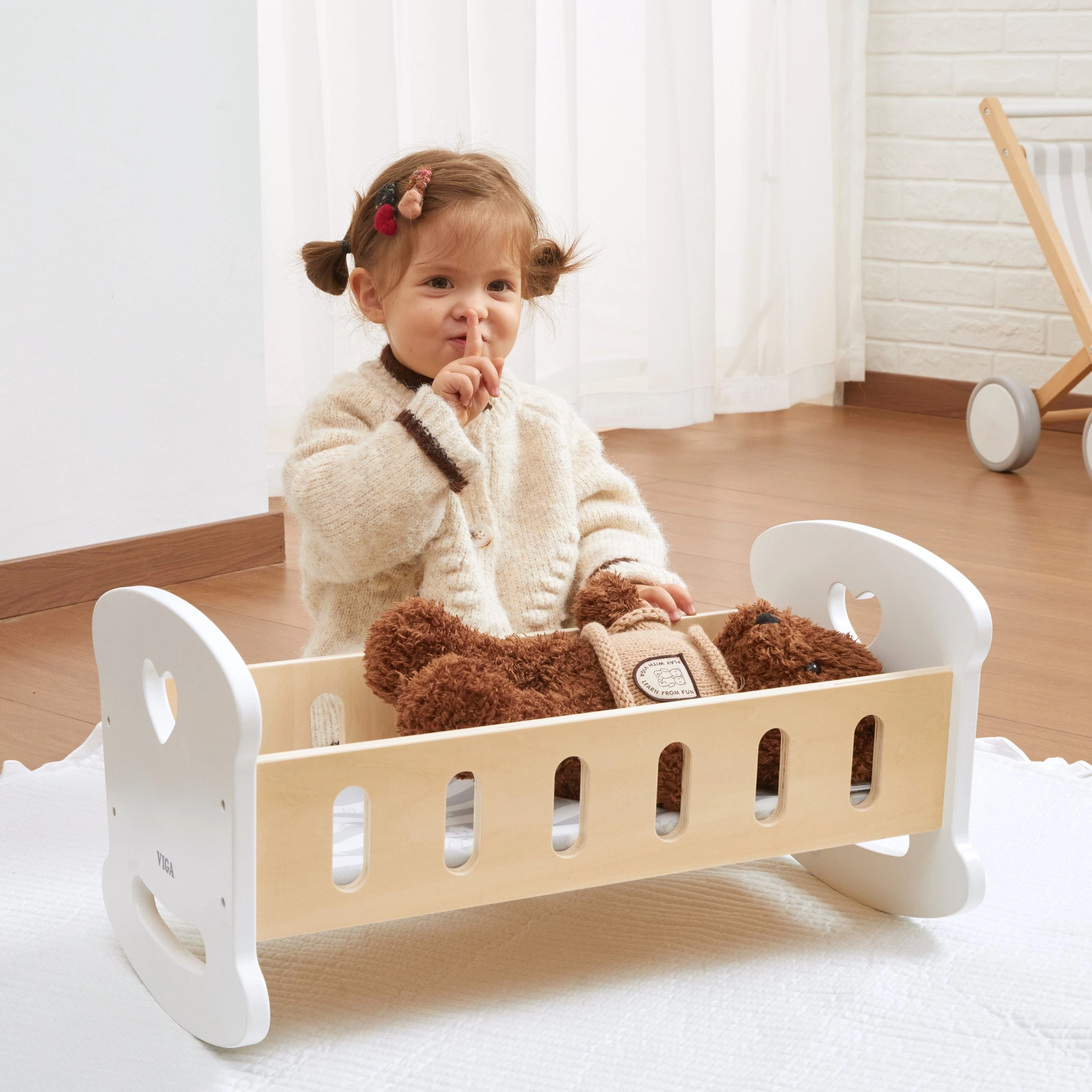 Kolijevka stoji na zakrivljenim klizačima koji omogućuju glatko i stabilno ljuljanje. Djeca mogu lako umiriti i uspavati svoje lutke i plišance.