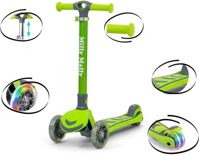 Tražite zabavan i siguran romobil za aktivnu djecu? Milly Mally Boogie odličan je izbor za svakodnevne vožnje i igru oko kuće. Zahvaljujući laganoj aluminijskoj konstrukciji i kvalitetno ojačan plastici, romobil je čvrst, izdržljiv i lako upravljiv. Tri kotačića pružaju izvrsnu stabilnost, skretanje je prirodno naginjanjem tijela, a stražnji blatobran služi kao nožna kočnica.