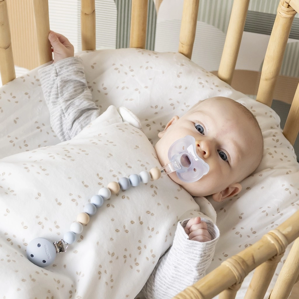 Nježne, okrugle perlice od 100% silikona blage su prema bebinoj koži i lako se održavaju – dovoljno ih je prebrisati vlažnom krpom.