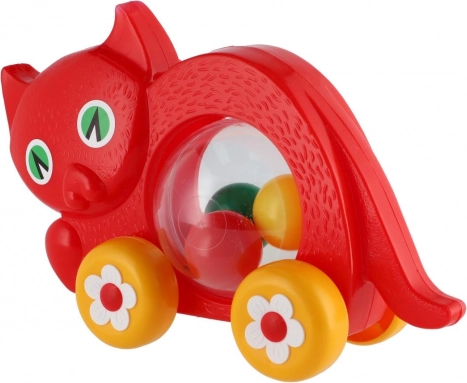 Ova šarena vučna mačkica idealan je suputnik za djecu koja počinju otkrivati svijet na svojim nožicama. Tijekom kretanja se unutar igračke pokreću loptice koje motiviraju dijete na hodanje, potiču grubu motoriku i podupiru osjetilnu percepciju.