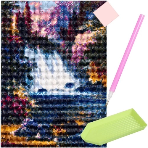 Otkrijte opuštanje i kreativnu zabavu s 5D dijamantnom mozaikom s motivom slapa. Set sadrži sve potrebno: platno s ljepljivim slojem, obojene kamenčiće, aplikator, vosak i tacnu. Idealno za početnike i napredne – dovoljni su strpljenje i preciznost. Gotova slika nježno blista i postaje stilska dekoracija interijera. Ova kreativna aktivnost podržava koncentraciju, razvija maštu i pomaže u smanjenju stresa.