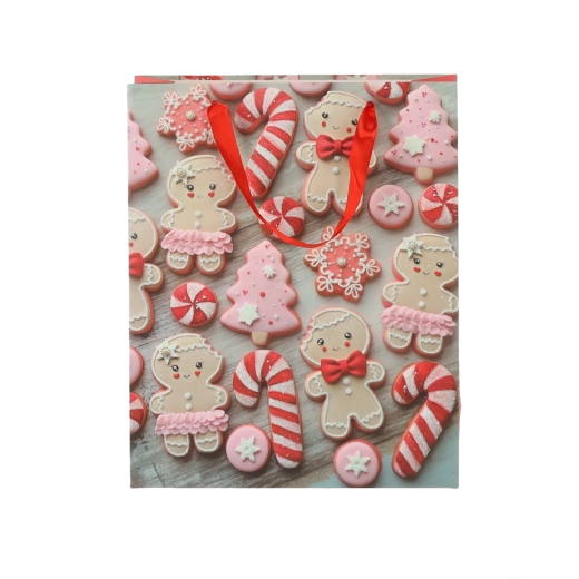 Stilsko božićno pakiranje bez muke. Poklon-vrećice s motivom medenjaka i blagdanskih keksa daju svakom daru očaravajući sezonski izgled. Kvalitetan papir gramature 157 g/m² osigurava odličnu čvrstoću, zahvaljujući kojoj sadržaj sigurno stiže do osobe kojoj je namijenjen.