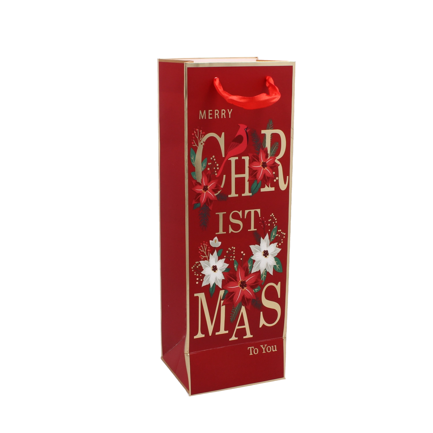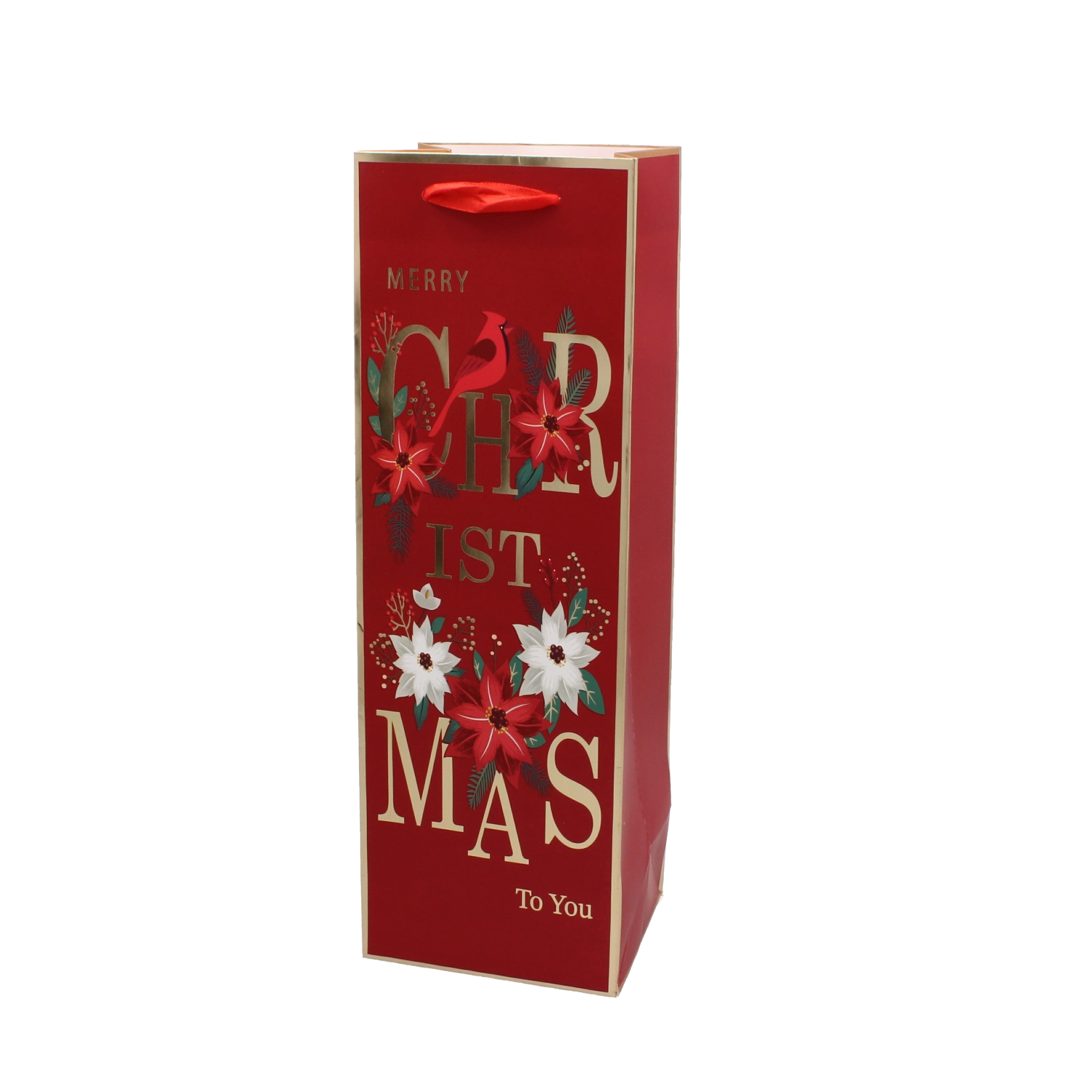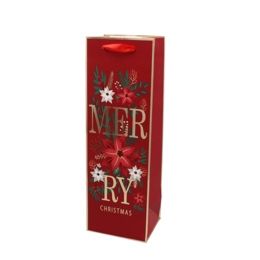 Poklon-vrećice za vino Christmas to You oduševit će elegantnim izgledom i čvrstom konstrukcijom. Svečani crveni motivi s cvjetovima, zlatnim natpisima i profinjenim detaljima naglašavaju blagdansku atmosferu. Dimenzije 36 × 12 × 10 cm idealne su za većinu vinskih boca, pjenušaca i drugih užih poklona.