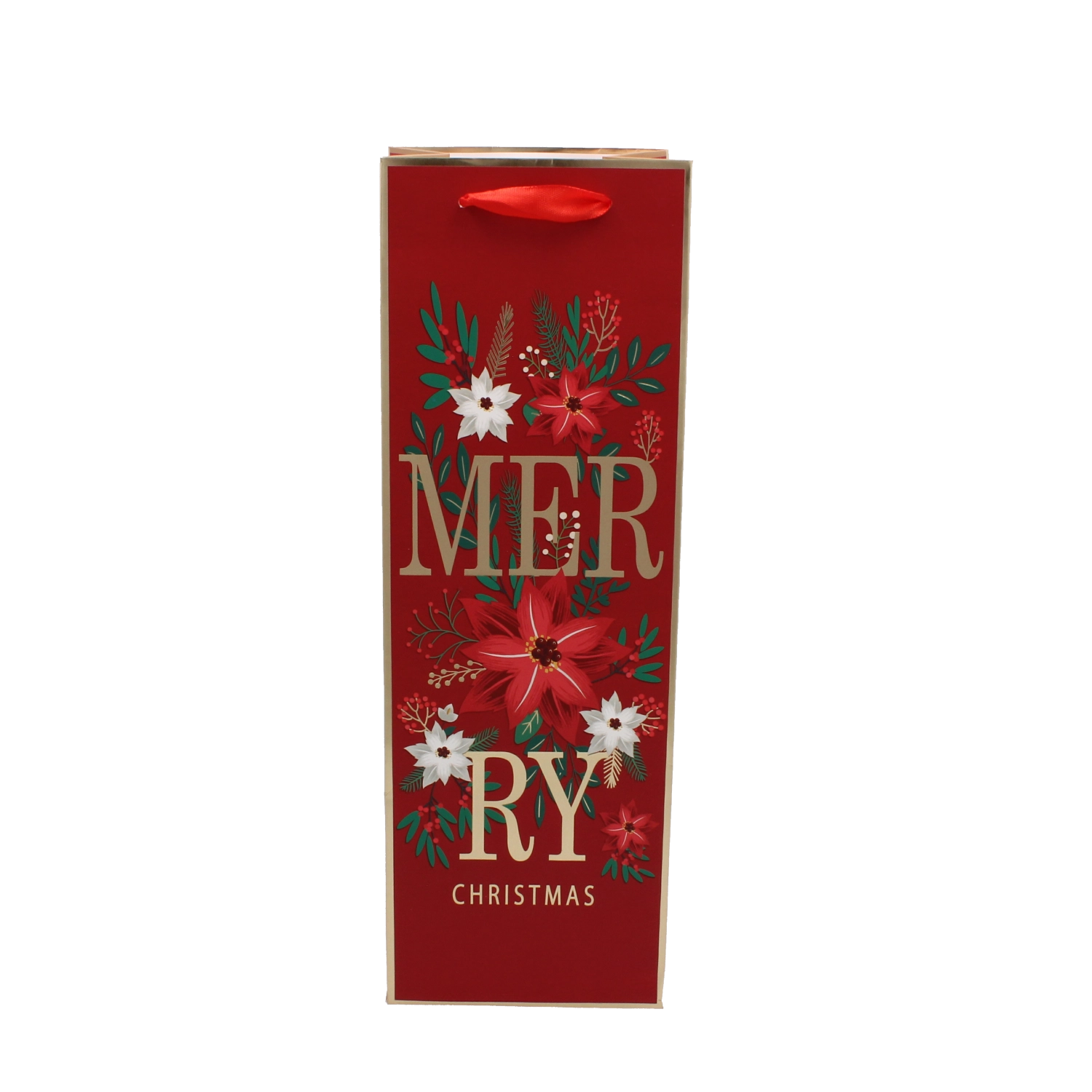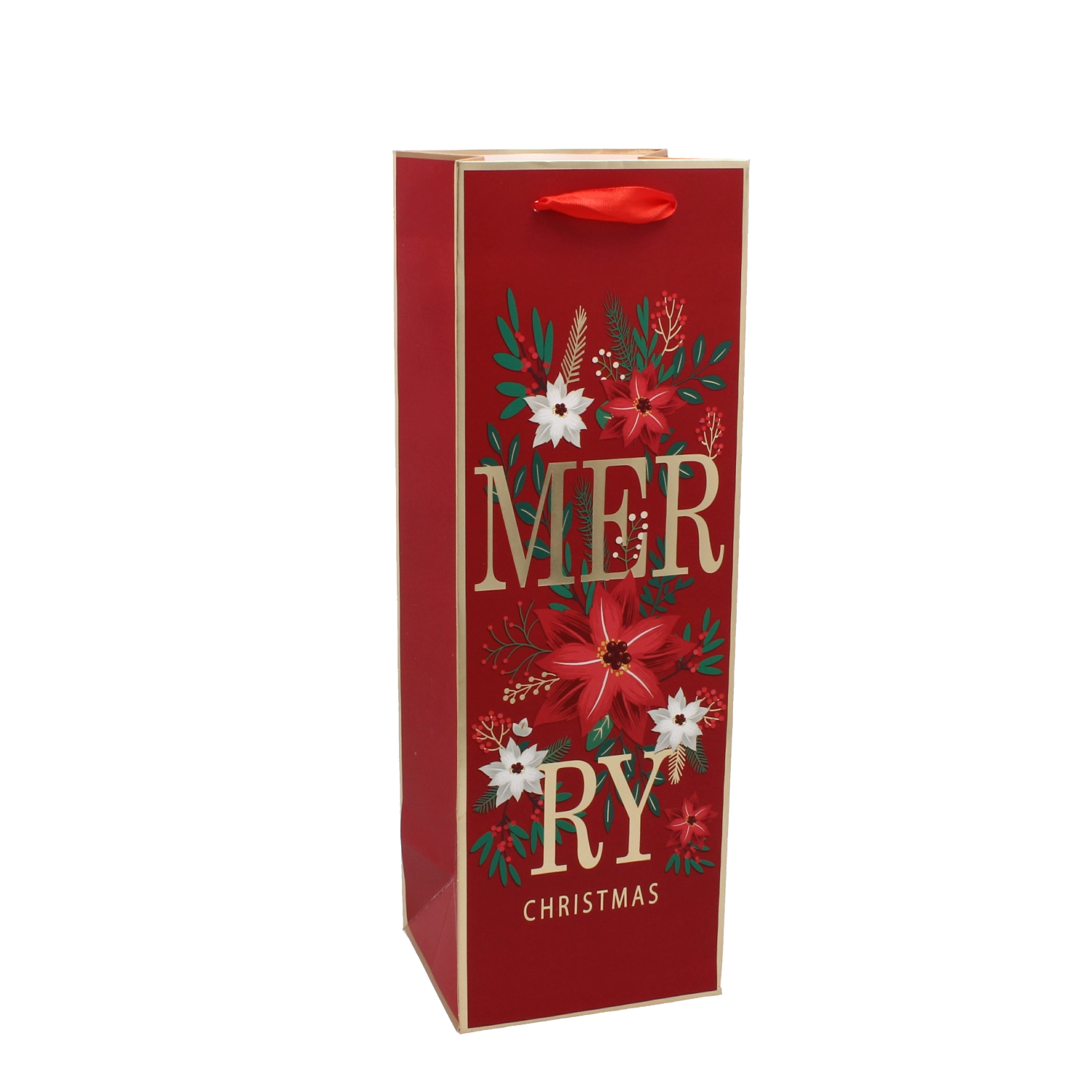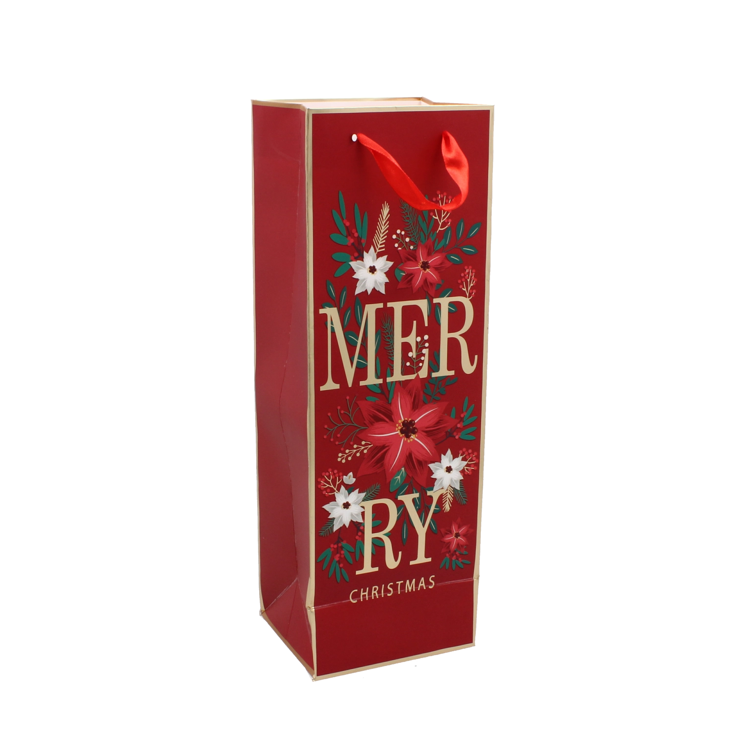 Poklon-vrećice za vino Christmas to You oduševit će elegantnim izgledom i čvrstom konstrukcijom. Svečani crveni motivi s cvjetovima, zlatnim natpisima i profinjenim detaljima naglašavaju blagdansku atmosferu. Dimenzije 36 × 12 × 10 cm idealne su za većinu vinskih boca, pjenušaca i drugih užih poklona.