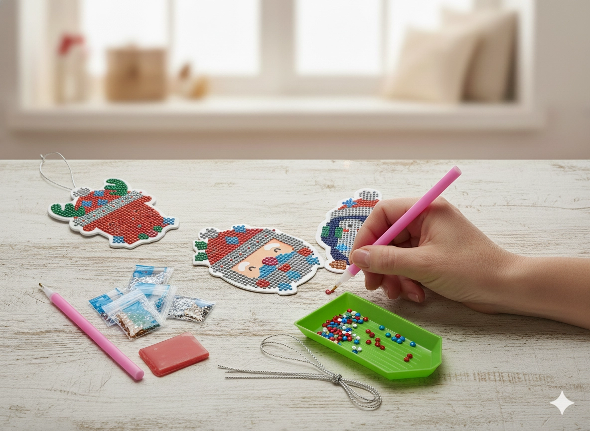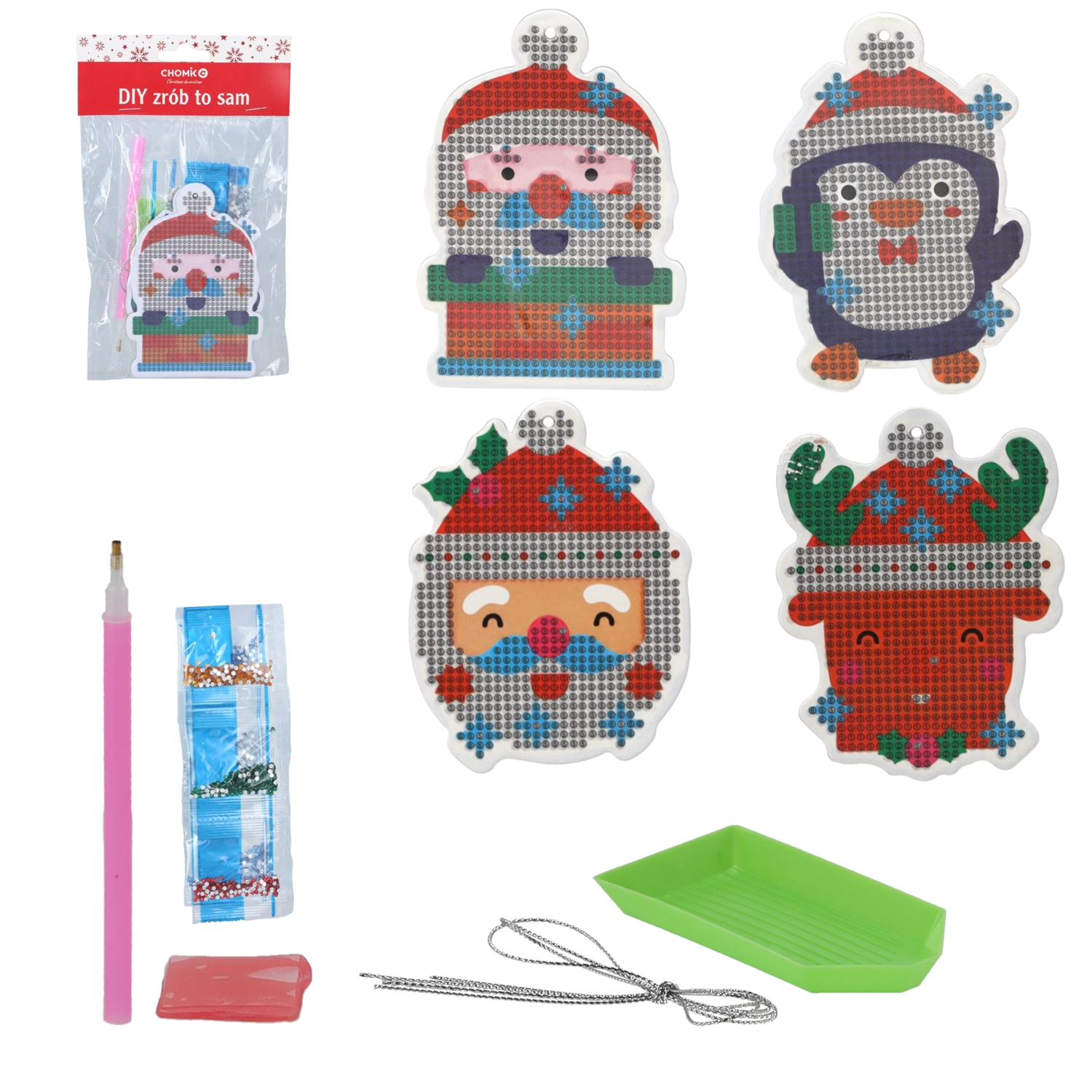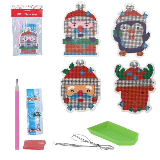 Idealan kao kreativan poklon i zajednička aktivnost za cijelu obitelj. Miks božićnih motiva (Djed Božićnjak, sob, pingvin) razveselit će djecu i odrasle te pružiti umirujuću relaksaciju i radost stvaranja. Ukrase možete objesiti na bor, staviti na prozor ili koristiti kao originalne privjeske za poklone.