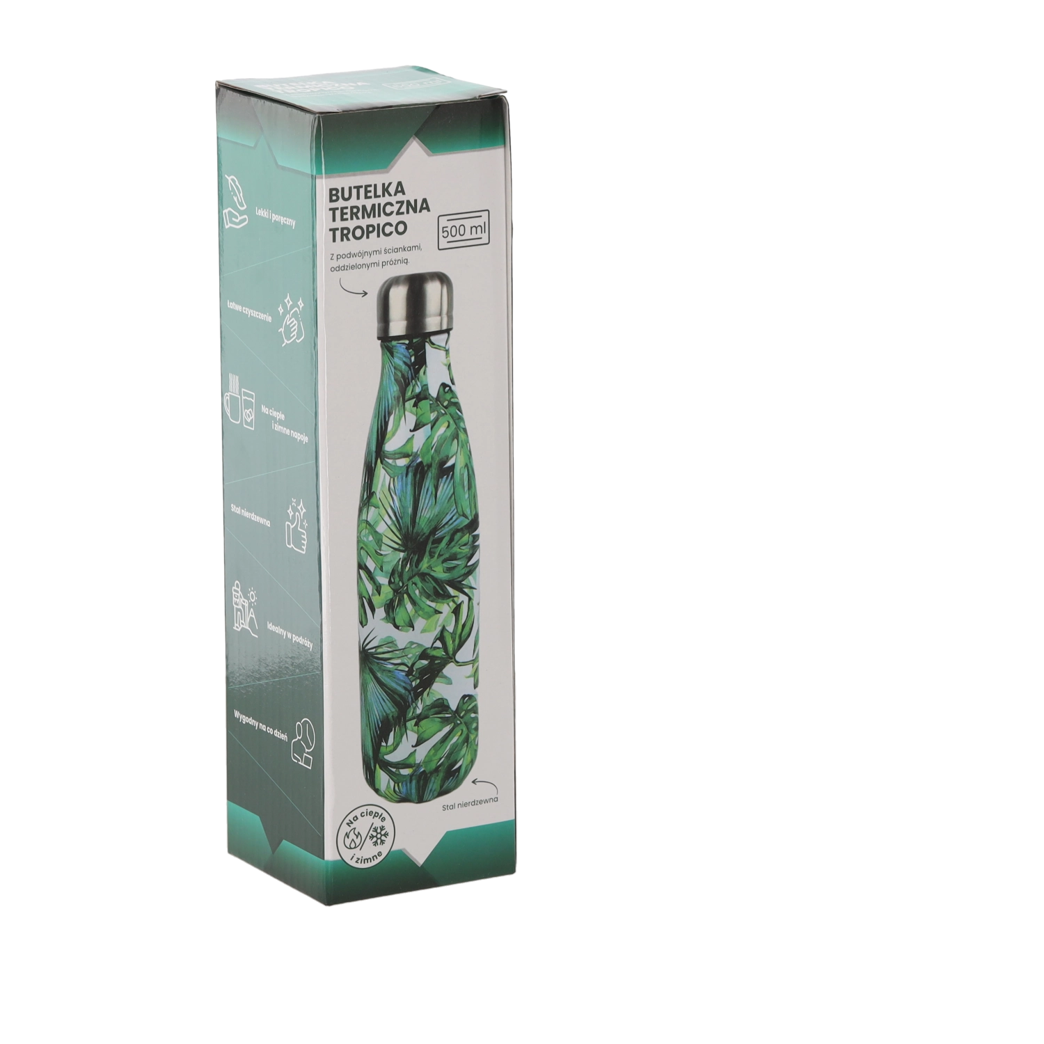 Dizajn s tropskim motivima unosi stil u svakodnevnu hidraciju, bilo u uredu, školi ili na izletu. Boca je ekološka i višekratna – smanjuje potrošnju jednokratne plastike i pomaže u zaštiti okoliša.
