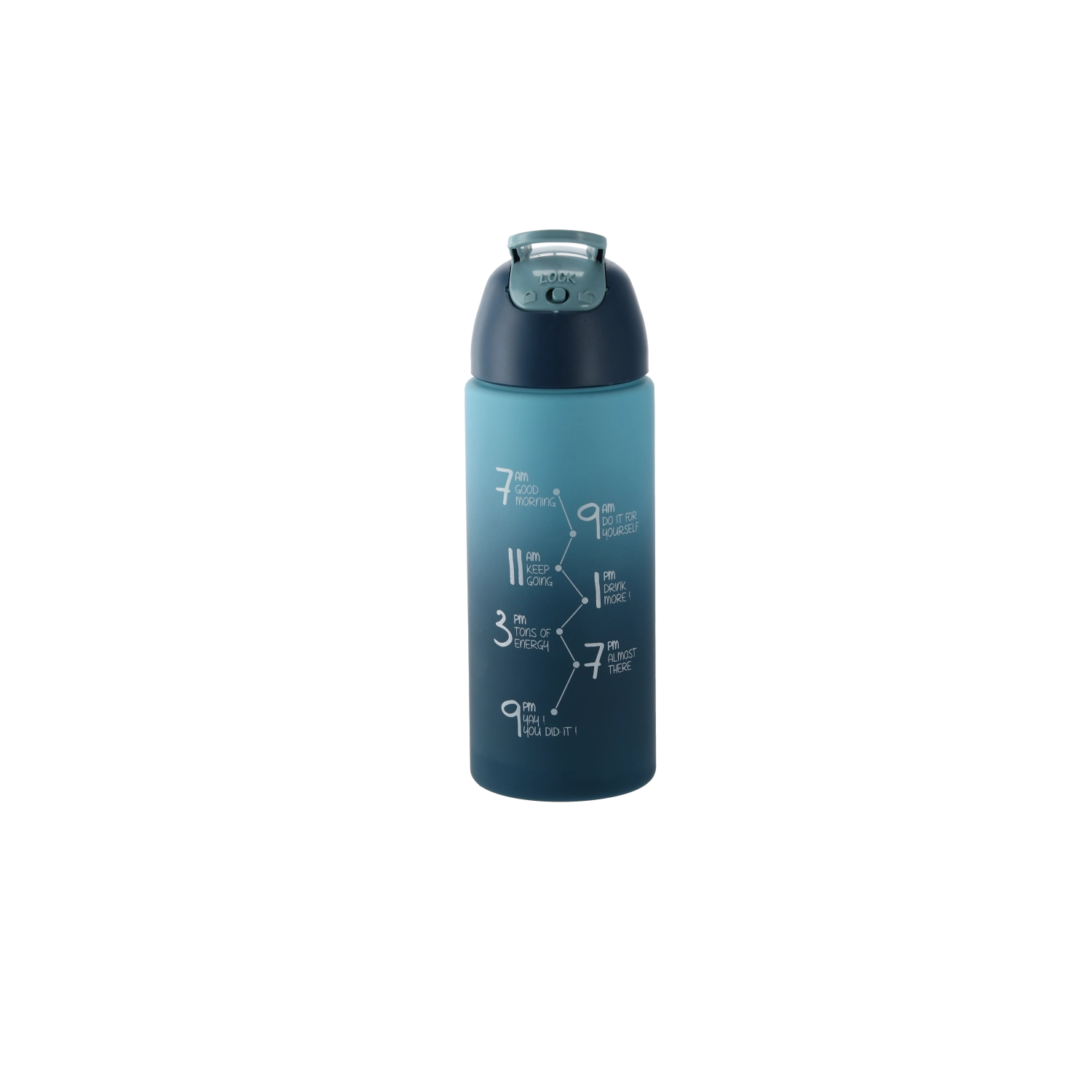 Stilna sportska boca za piće zapremnine 500 ml u plavom ombre izvedenju idealna je za svakodnevnu hidrataciju kod kuće, na poslu i tijekom sporta. Zahvaljujući flip-top poklopcu i nepropusnom zatvaraču udobno se pije bez prolijevanja, prozirno tijelo s mjerilnom skalom pomaže pratiti unos tekućine. Lagani i izdržljivi materijal PC prikladan je za putovanja i ruksak.