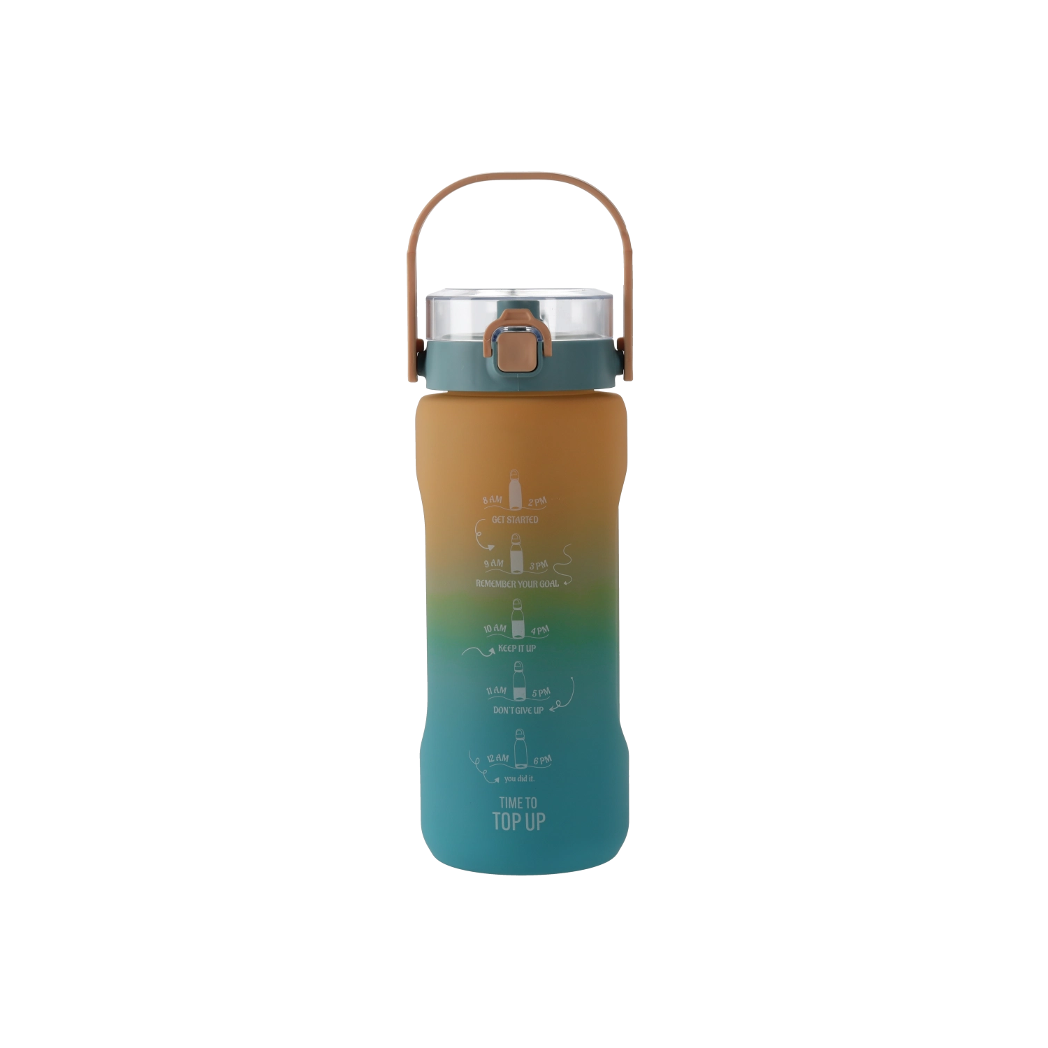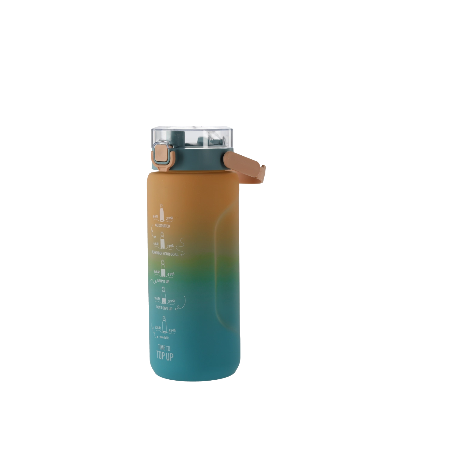 Ova boca za vodu velikog kapaciteta (2000 ml) spaja moderan izgled s praktičnim detaljima za lako svakodnevno korištenje. Prijelaz tamnoplave i svjetloplave boje daje boci atraktivan stil, dok je robusni PC materijal lagan, izdržljiv i prikladan za često nošenje.