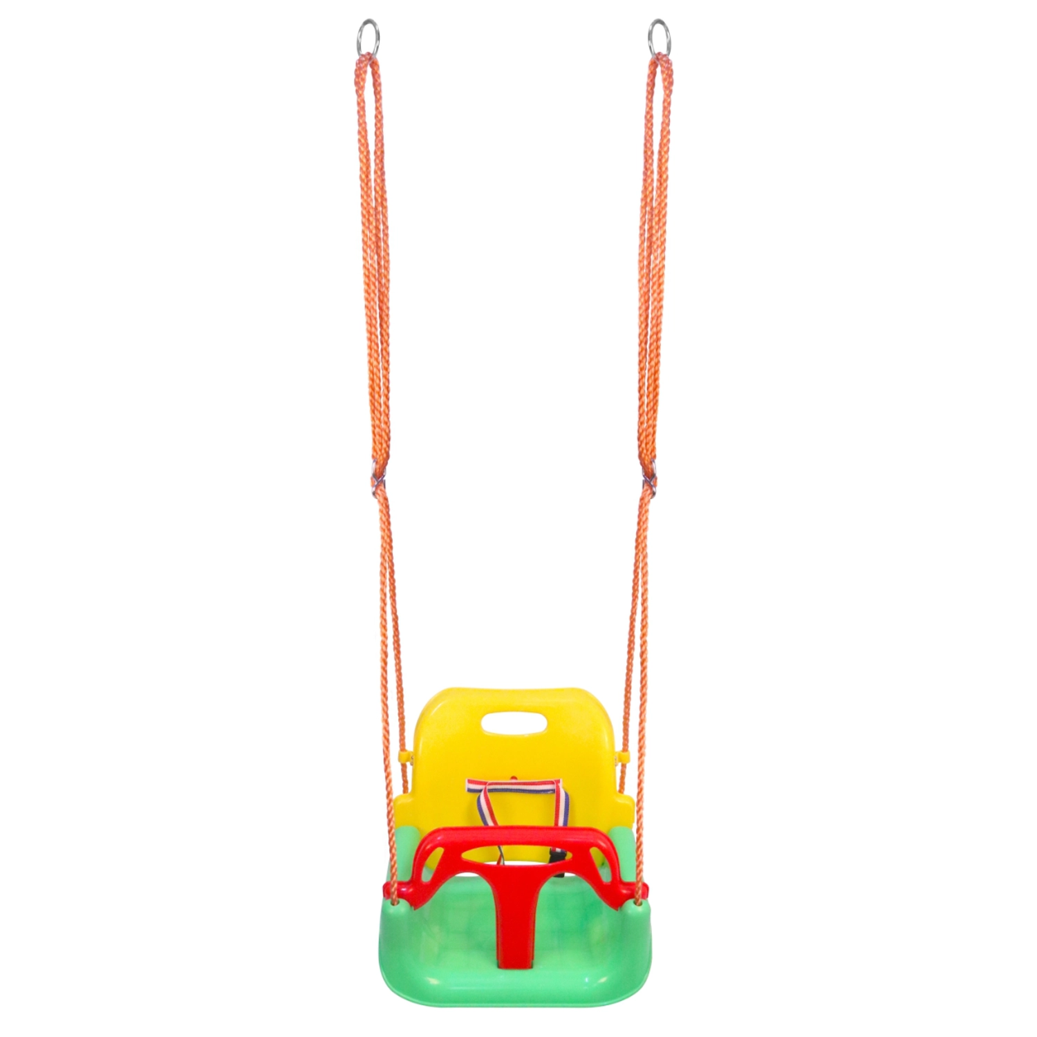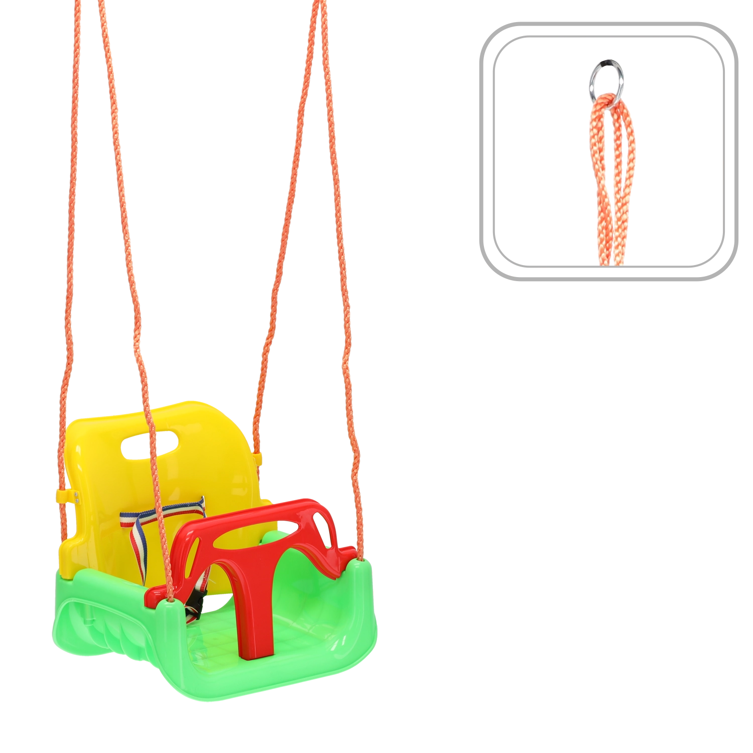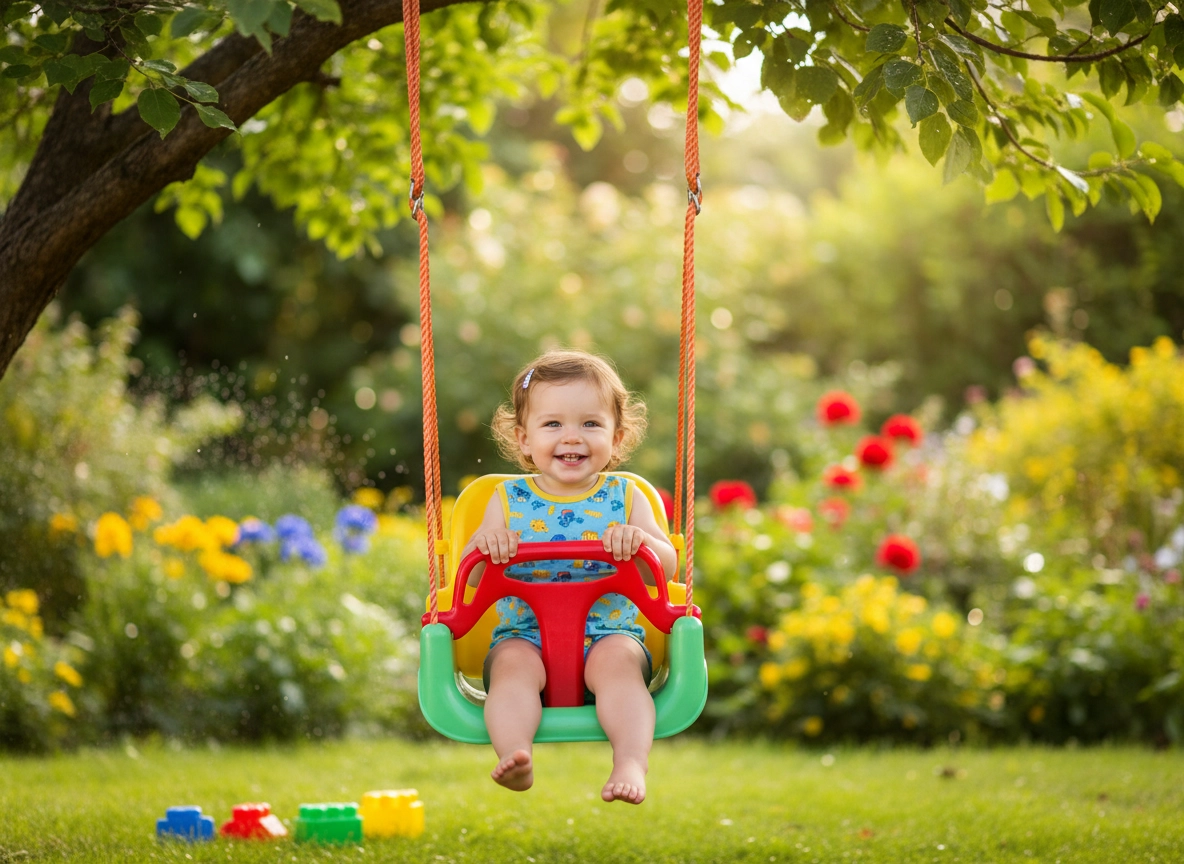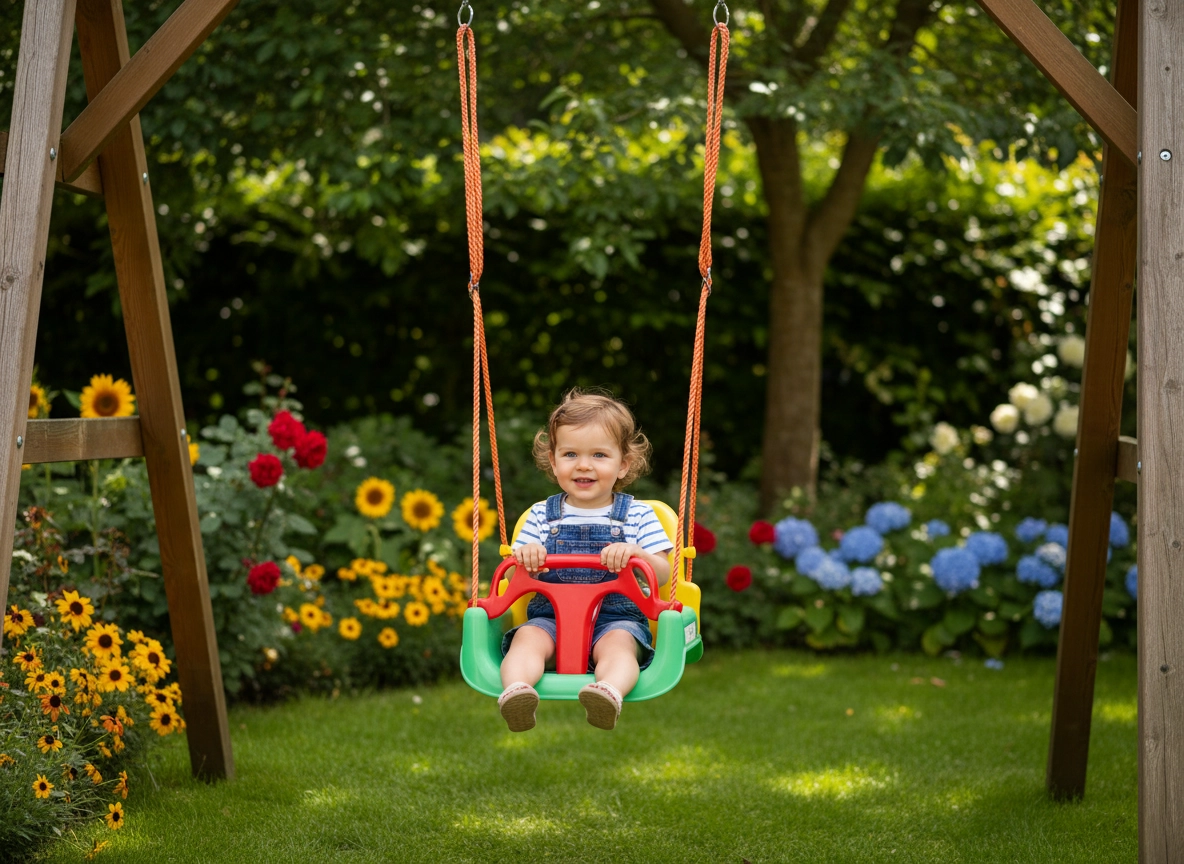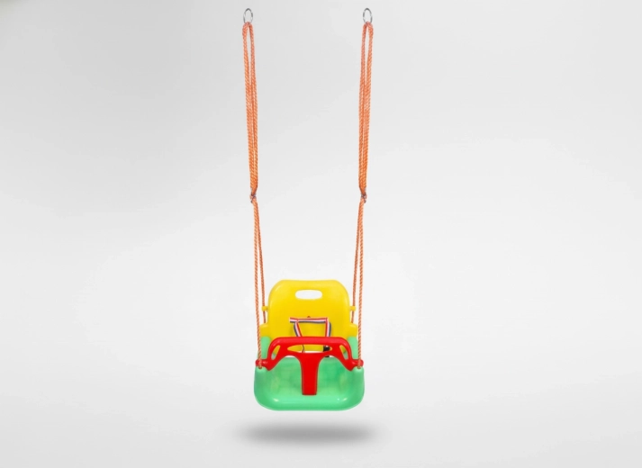 Šarena dječja njihaljka s kantastim sjedalom pruža sigurno i udobno ljuljanje za najmlađe. Zahvaljujući dubokom sjedalu, visokom naslonu i prednjoj sigurnosnoj prečki, idealna je za stan i vrt te potiče razvoj ravnoteže i koordinacije.