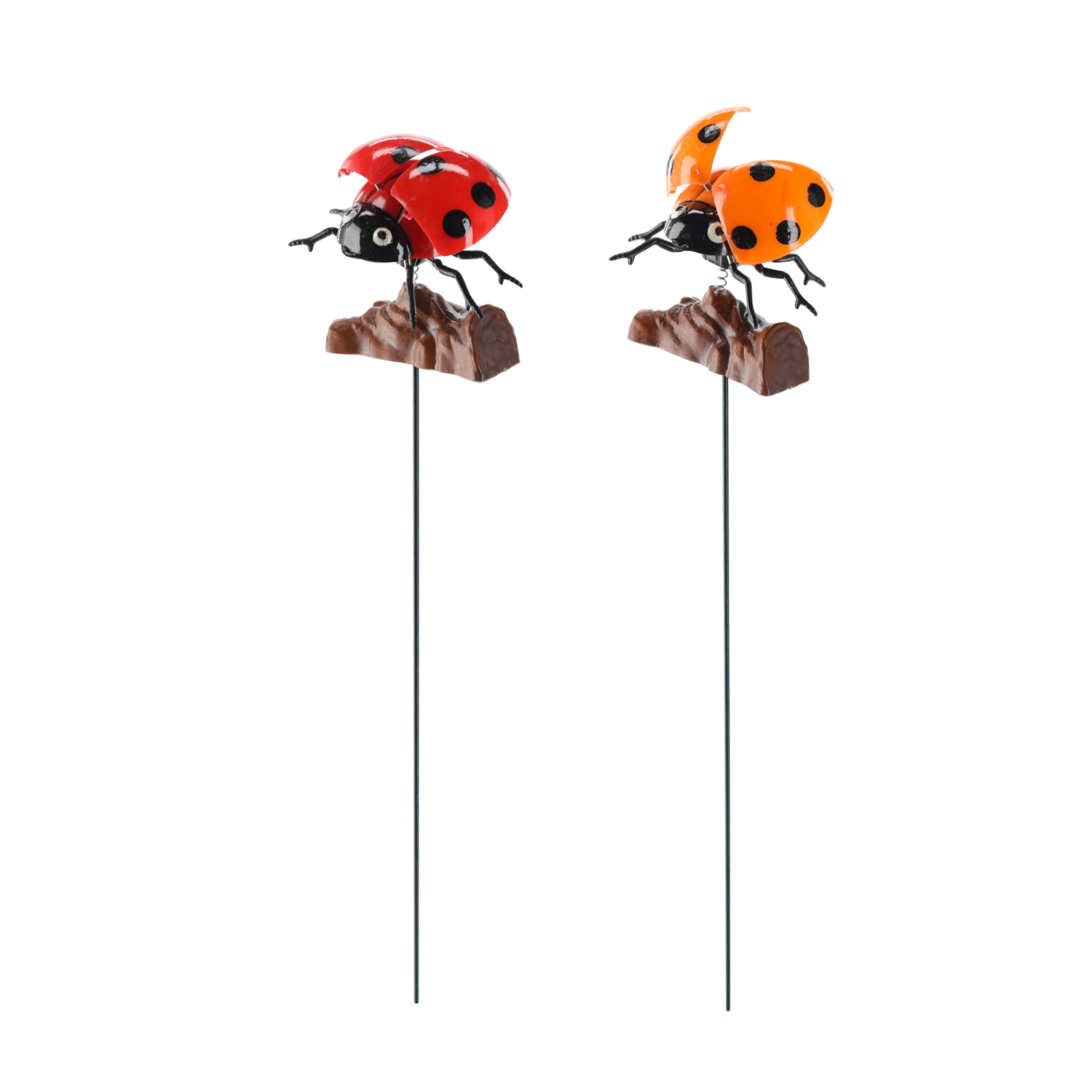 Ovaj šarmantni vrtni ukras s bubamarom donosi vašem prostoru razigran i prirodan izgled. Zahvaljujući ukupnoj duljini od 50 cm lako ga ćete umetnuti u gredicu ili posudu i trenutačno stvoriti zanimljiv vizualni element. Obojena bubamara (crvena ili žuta) dimenzija približno 8 × 10 cm ističe se sjajnom površinom i izraženim točkama.