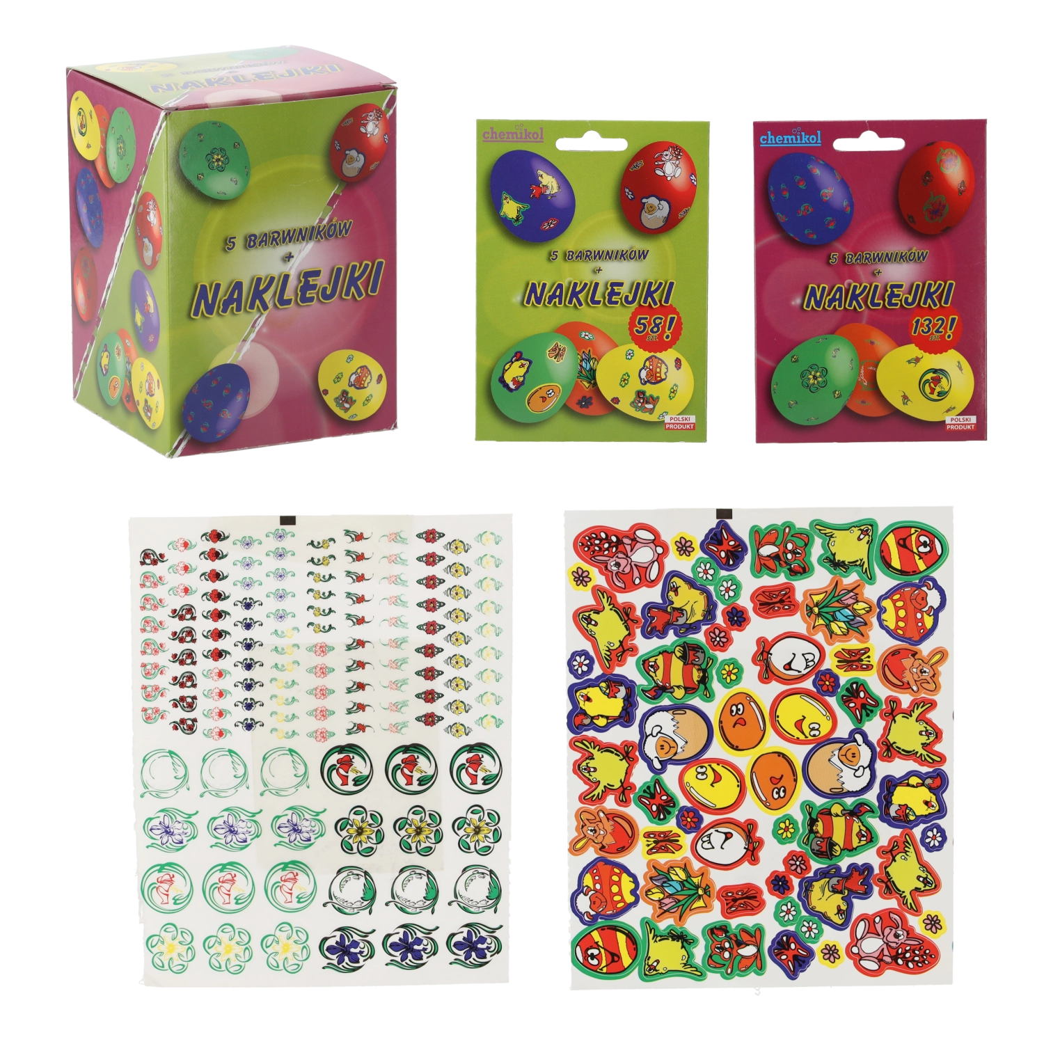 Uz ovaj kreativni set za ukrašavanje jaja u trenu ćete izraditi prekrasne uskrsne dekoracije. Pet zasićenih prehrambenih boja (crvena, narančasta, plava, žuta i zelena) osigurava izražajne i postojane boje, dok bogat set od 132 naljepnice s motivima janjaca, jaja, cvijeća i zečića svakom jajetu daje jedinstven stil.