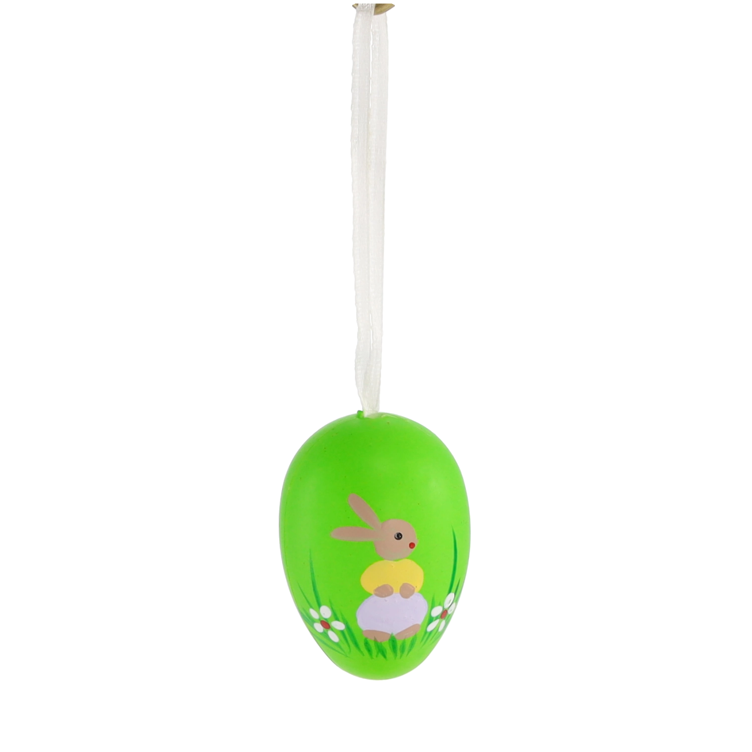 Ovaj elegantan set sadrži 6 komada plastičnih uskršnjih jaja veličine 4 × 6 cm. Svako je ukrašeno simpatičnim motivom zečića u travi i opremljeno vrpcom za vješanje. Pastelne nijanse žute, zelene i lavande naglašavaju proljetno raspoloženje i lako se kombiniraju s ostalim ukrasima.