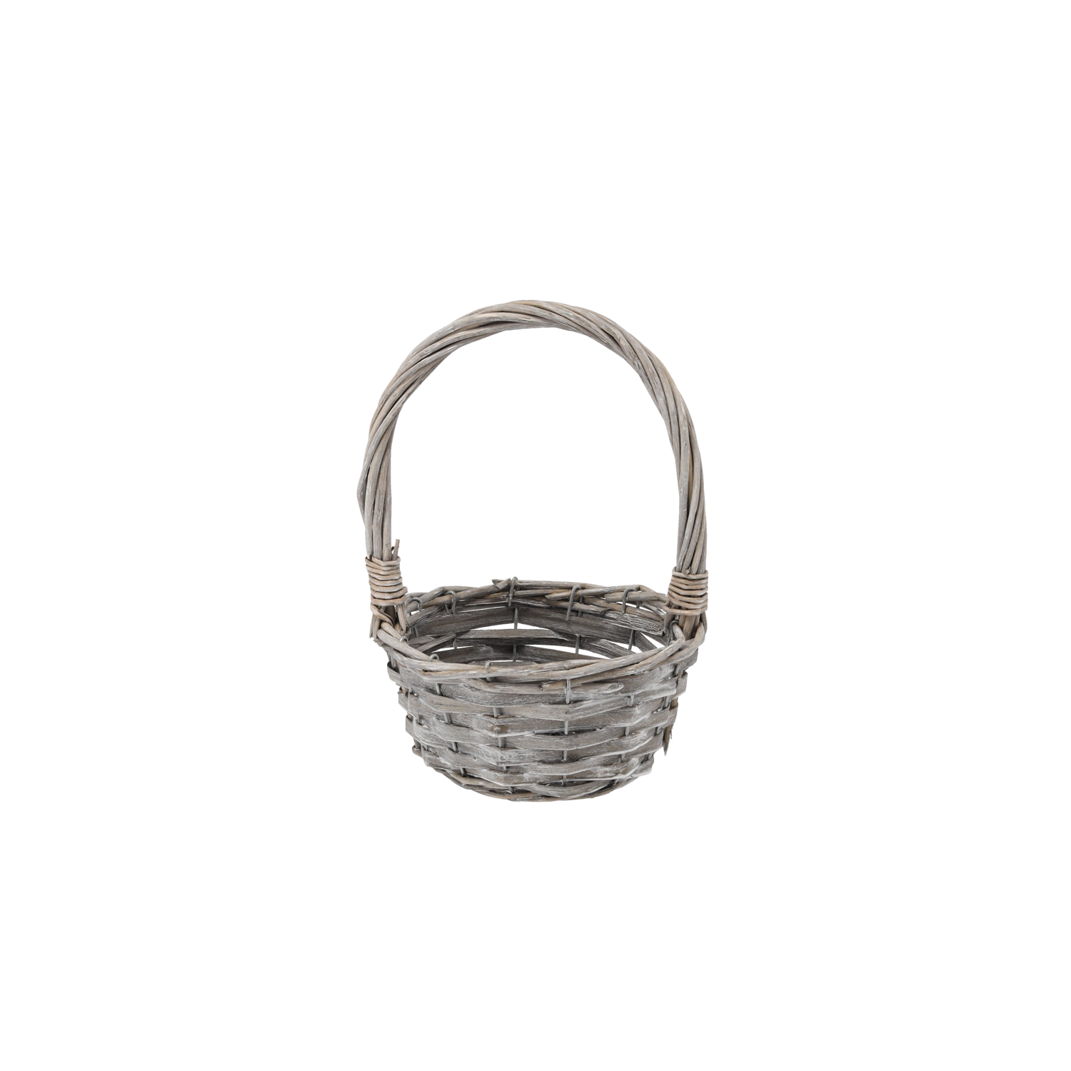 Univerzalna siva pletena košara s ručkom idealna je za manje kupnje, berbu voća ili stilsko odlaganje sitnica u kućanstvu. Prirodno pletivo daje košari autentičan izgled i ujedno osigurava dugi vijek trajanja.