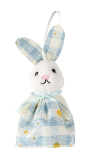 Stvorite veselu i šarenu uskrsnu dekoraciju s visećim zekama koji će oduševiti i djecu i odrasle. Svaki zeko ima meku plišanu glavicu, duga platnena ušesa i tekstilnu haljinicu s decentnom kockicom i točkicama. Zahvaljujući visećoj omčici postavit ćete ih u trenu bilo gdje – na grančice u vazi, zavjese, rukohvate ili poklon-pakete.