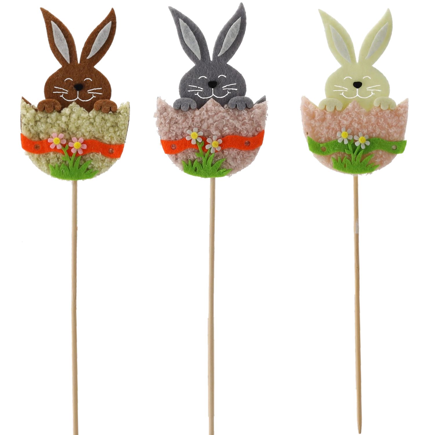 Stvorite blagdanski ugođaj kod kuće s preslatkim zekom u ljusci na drvenom štapiću. Dekoracija je lagana, stabilna i odlično se drži u supstratu i florističkoj spužvi. Mix triju boja omogućuje kreativne kombinacije u proljetnim i uskršnjim aranžmanima.