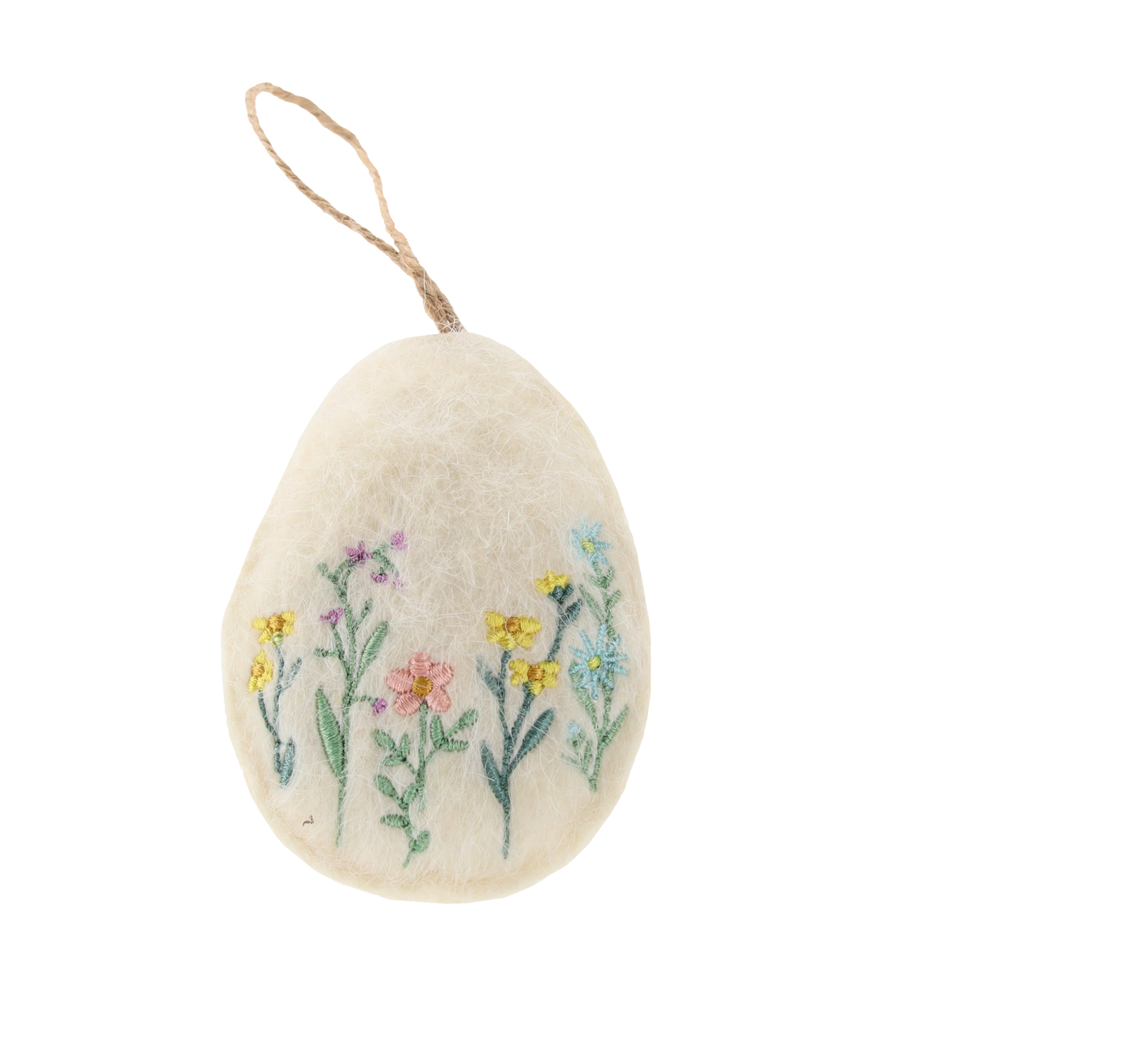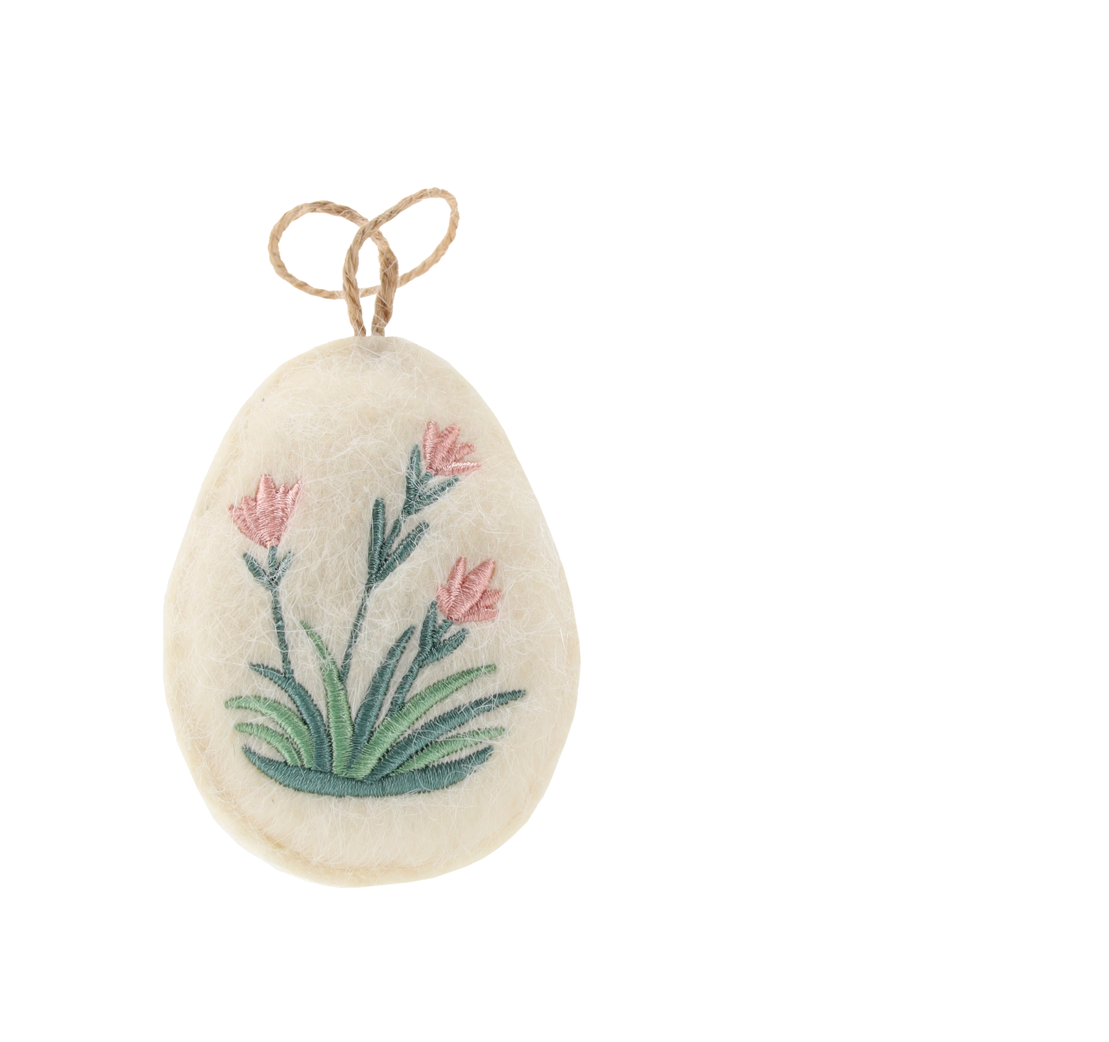 Ovaj elegantni uskršnji ukras u obliku jajeta ističe se finim cvjetnim vezom i pažljivom izradom. Zahvaljujući praktičnoj omčici lako ga objesite na grančice, pletene vijence ili u prozor. Set od 12 komada u dva uzorka omogućuje vam uskladiti dekor u jedinstven stil ili ga razigrano mijenjati.