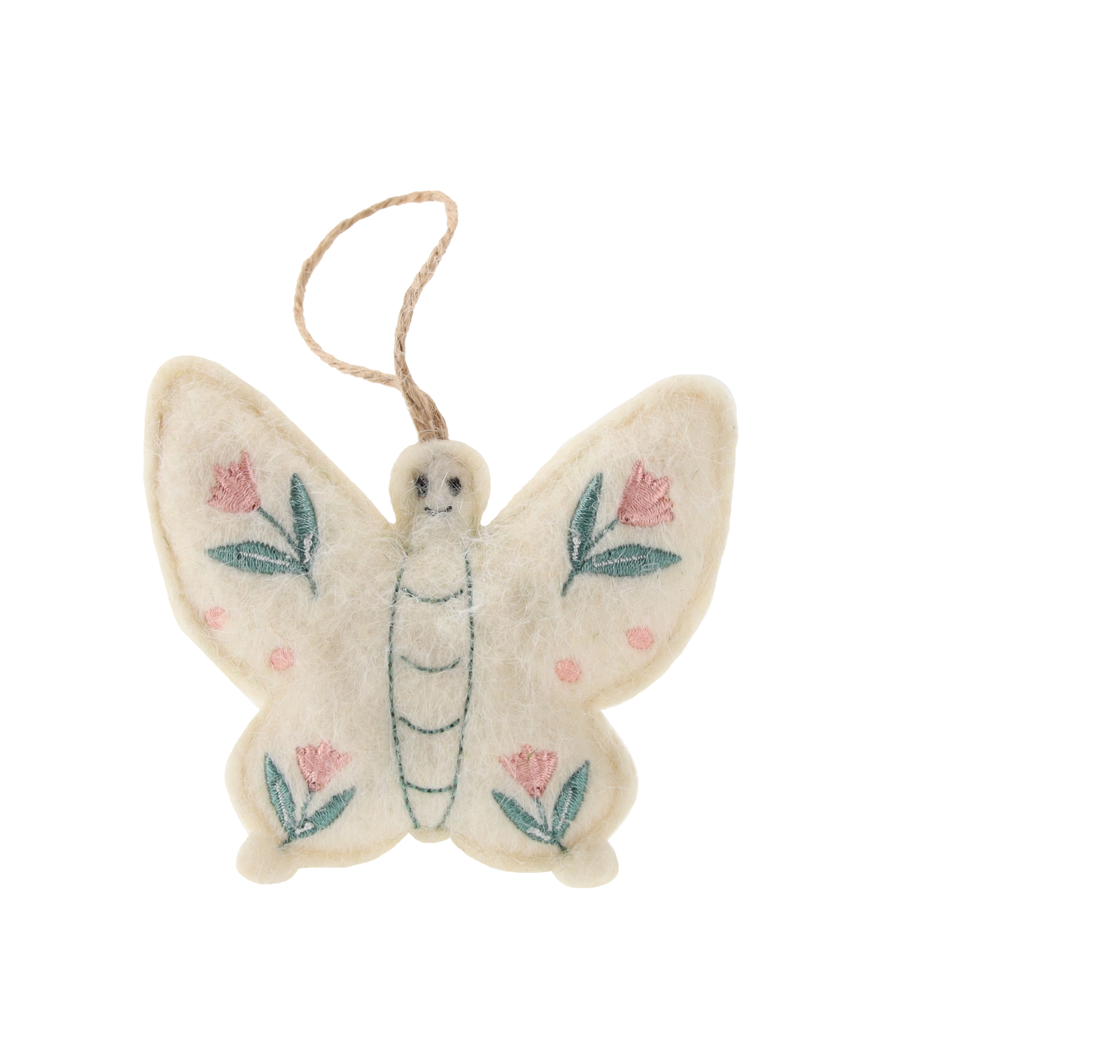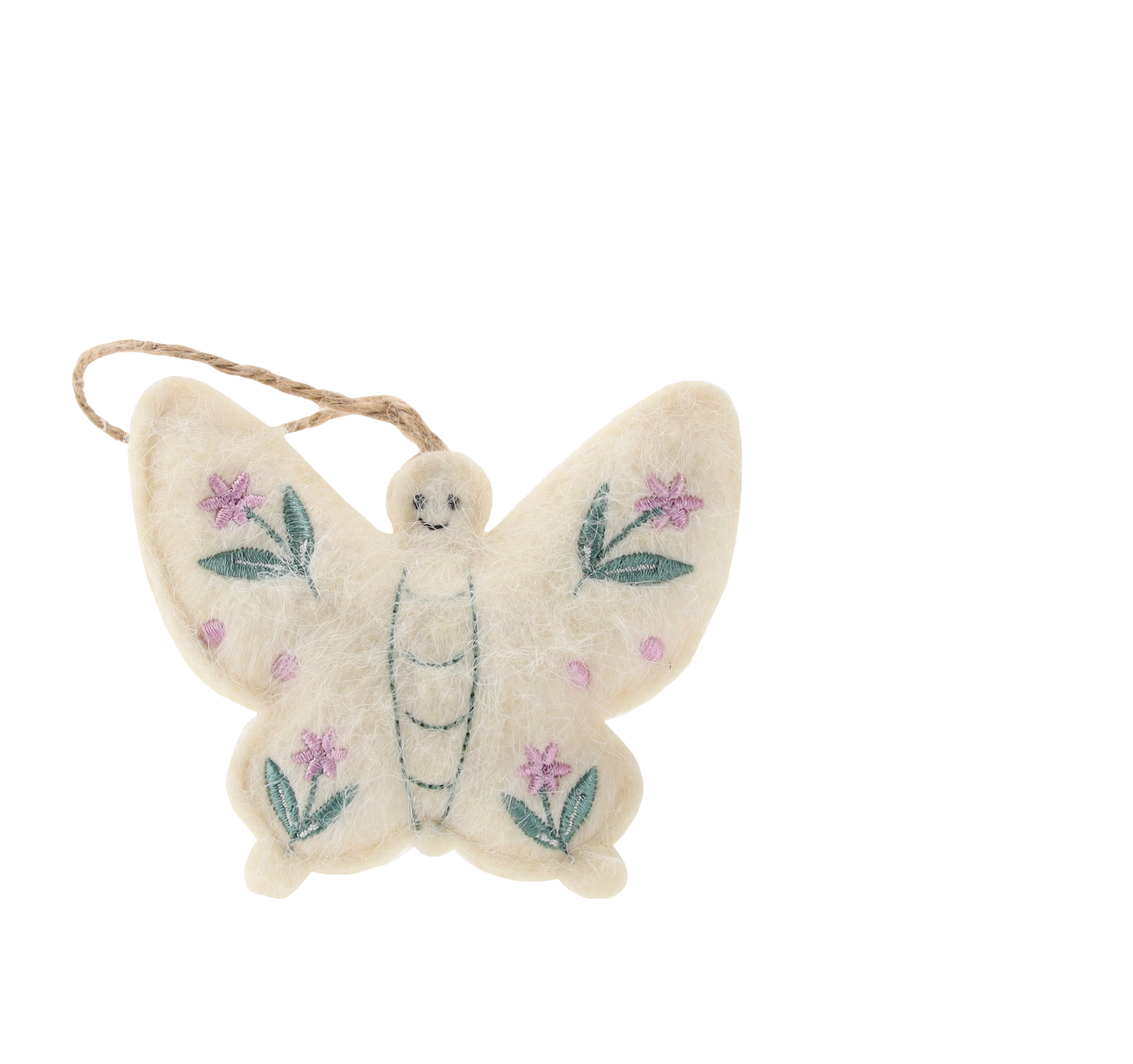 Ovaj filcani uskrsni ukras u obliku leptira idealan je za proljetno uređenje stana, kuće i ureda. Pastelni tonovi, nježan cvjetni vez i meka struktura djeluju toplo i prirodno. Zahvaljujući praktičnoj vrpci objesit ćete ga u trenu gdje god želite naglasiti blagdansku atmosferu.