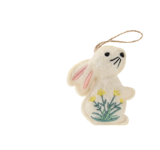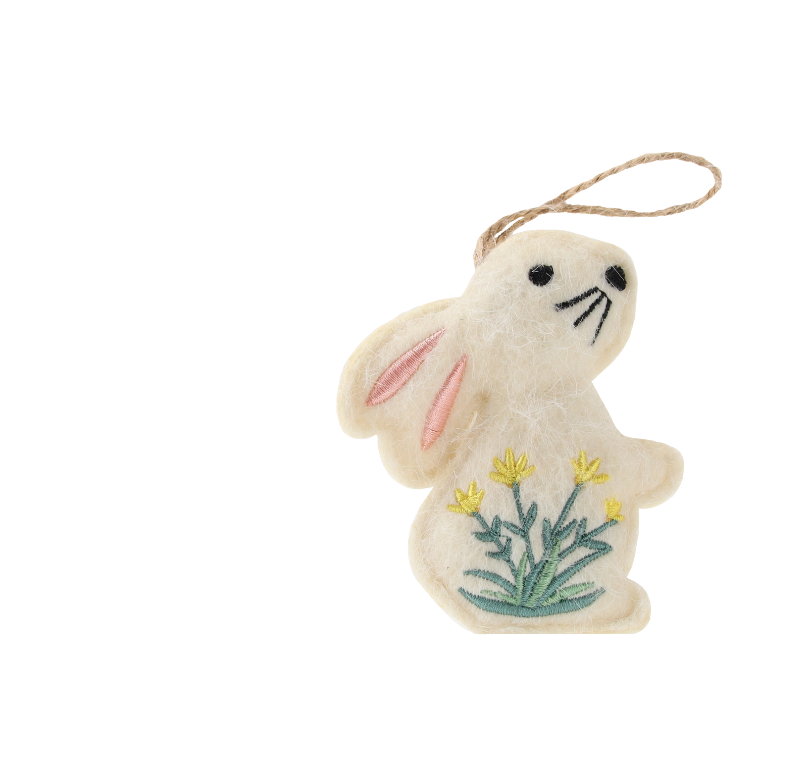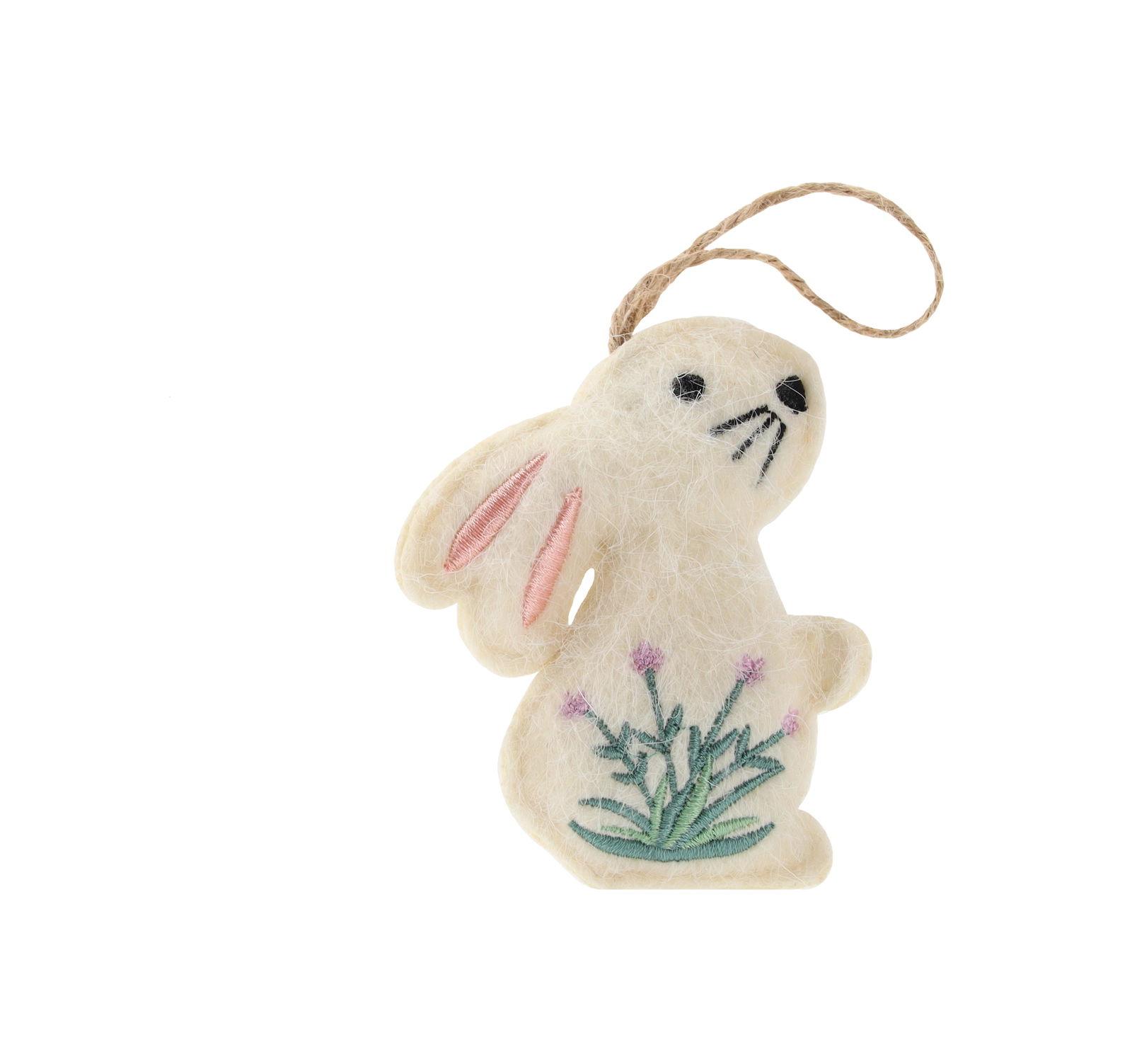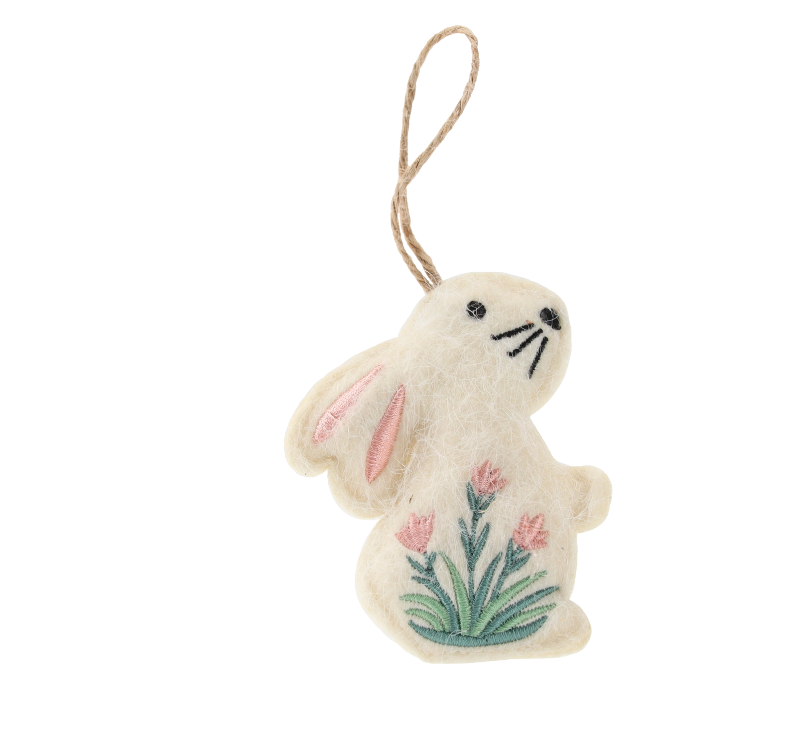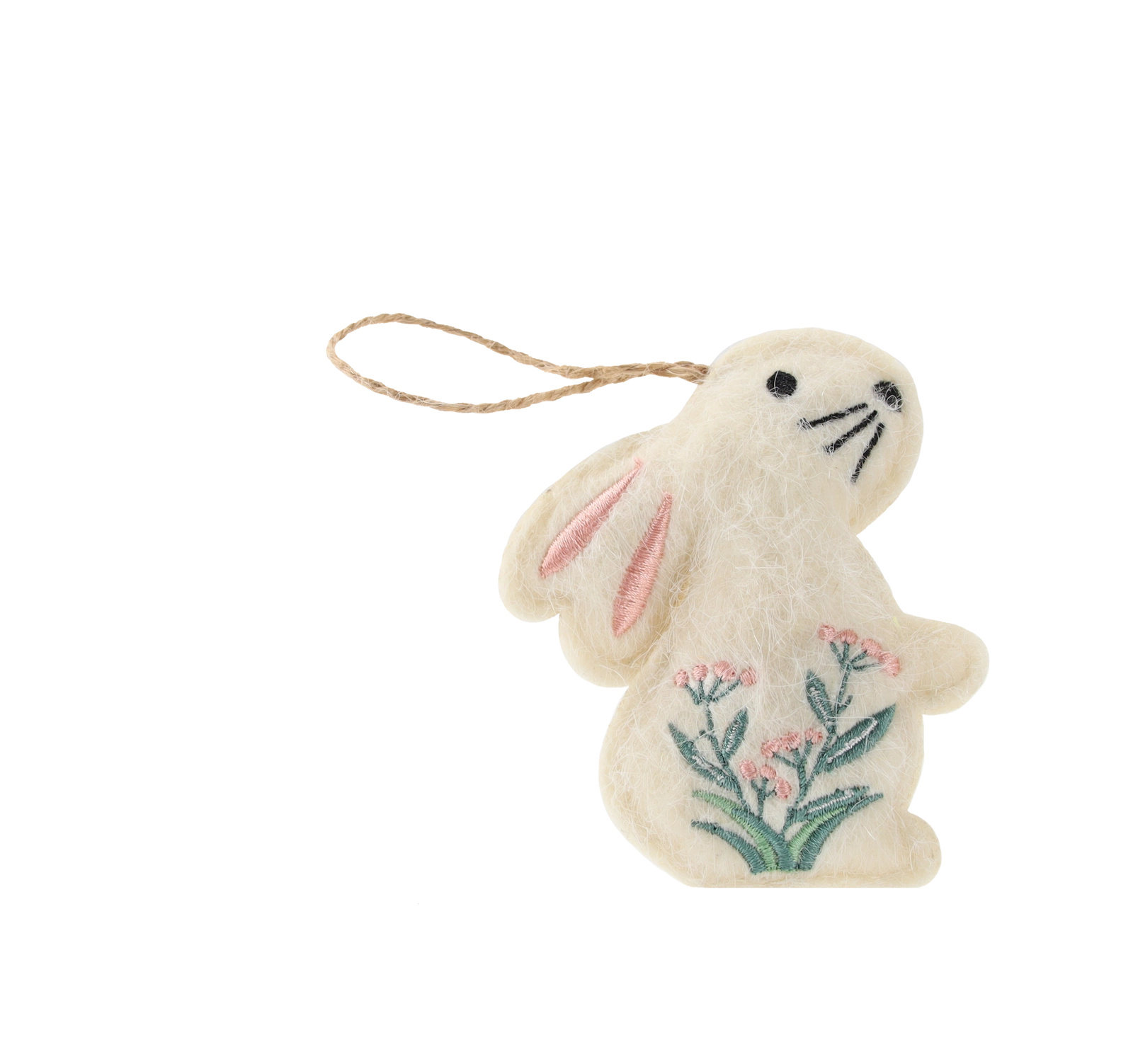 Stvorite ugodnu proljetnu atmosferu s elegantnim visećim zečićima koji će se istaknuti na granama, grančicama vrbe mace, vijencima, prozorima i vratima. Mekani tekstilni materijal s nježnim cvjetnim vezom djeluje prirodno i domaće, pa se lijepo uklapa u mnoge dekorativne stilove – od rustikalnog do skandinavskog.