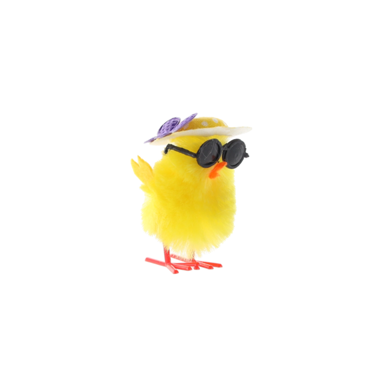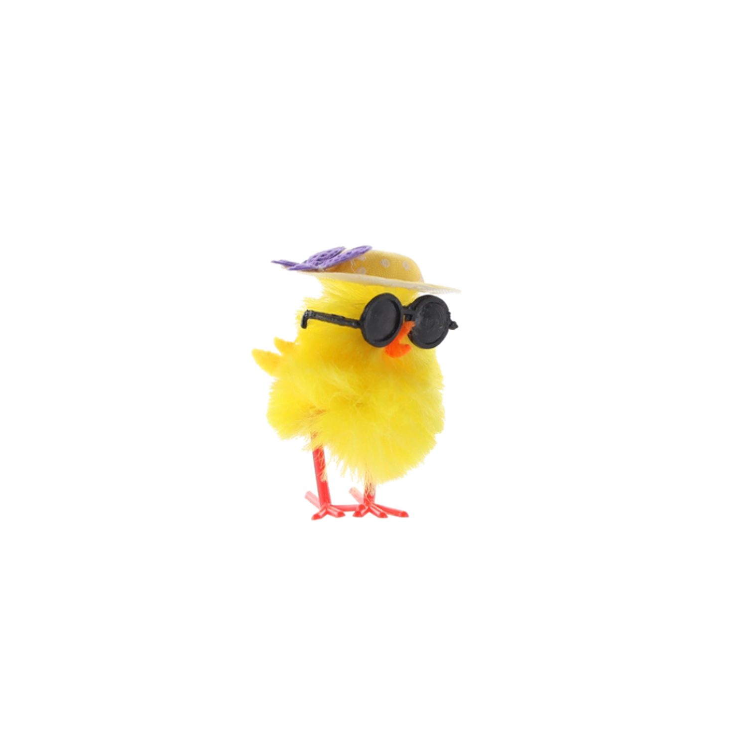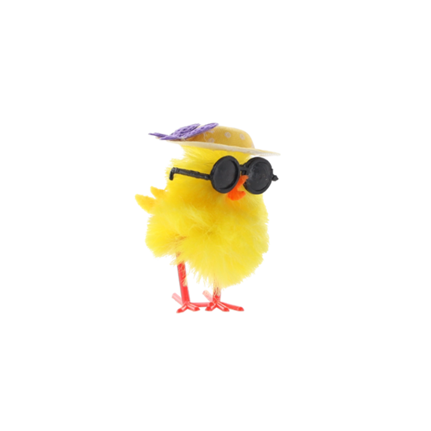 Crne okrugle sunčane naočale i stilski šeširić daju pilićima jedinstven šarm – savršen naglasak za svaki uskrsni aranžman.