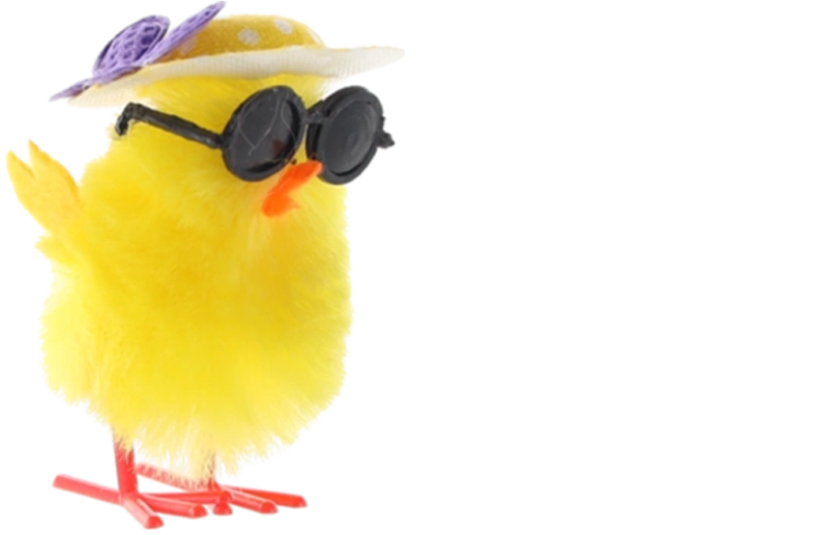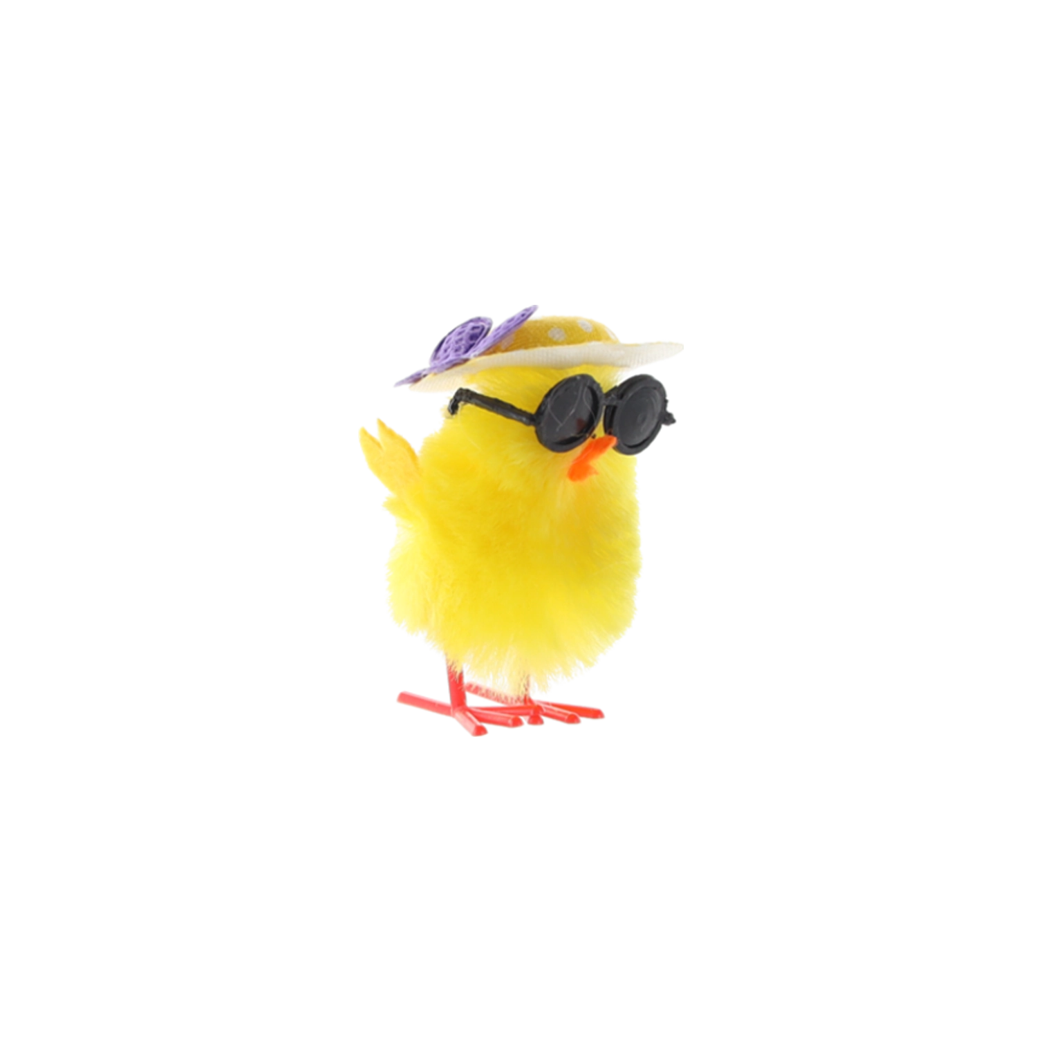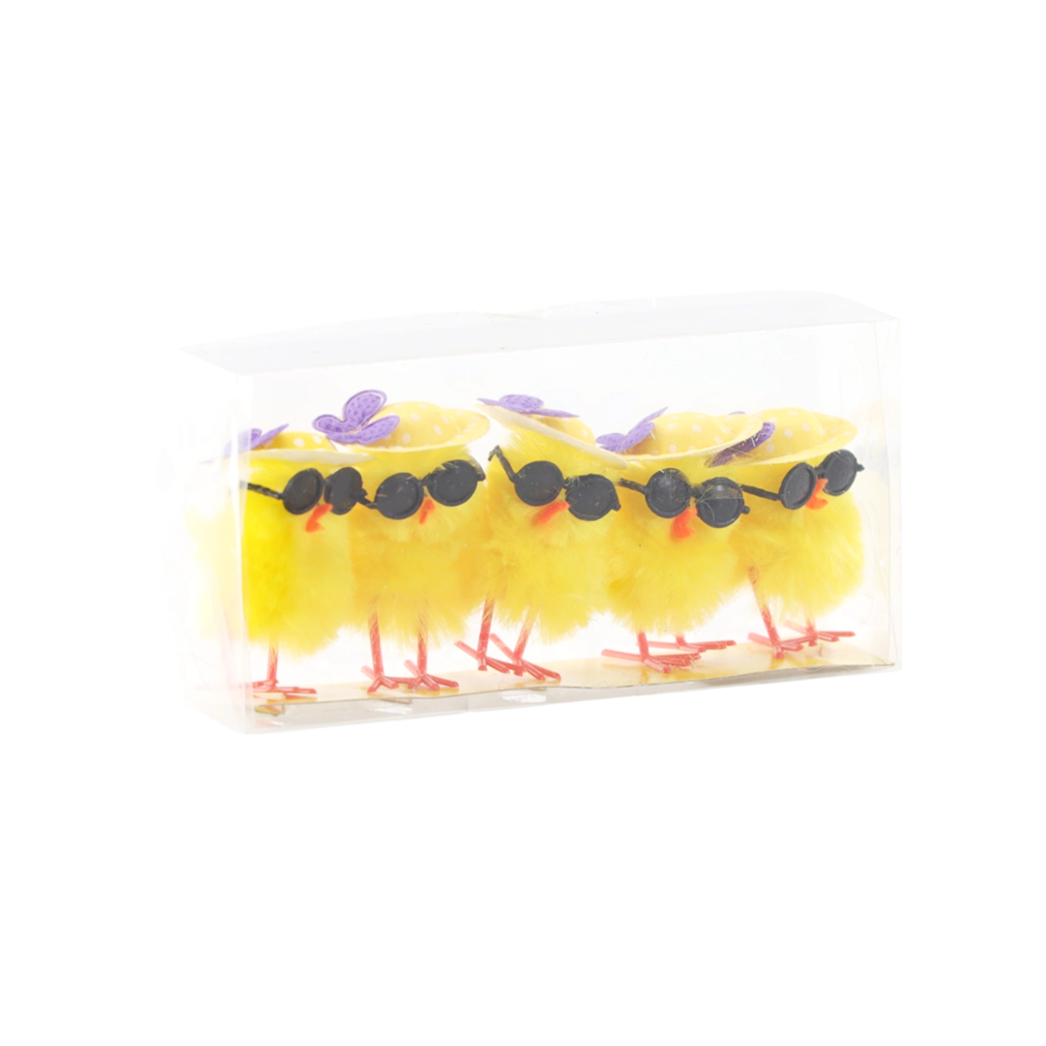 Crne okrugle sunčane naočale i stilski šeširić daju pilićima jedinstven šarm – savršen naglasak za svaki uskrsni aranžman.