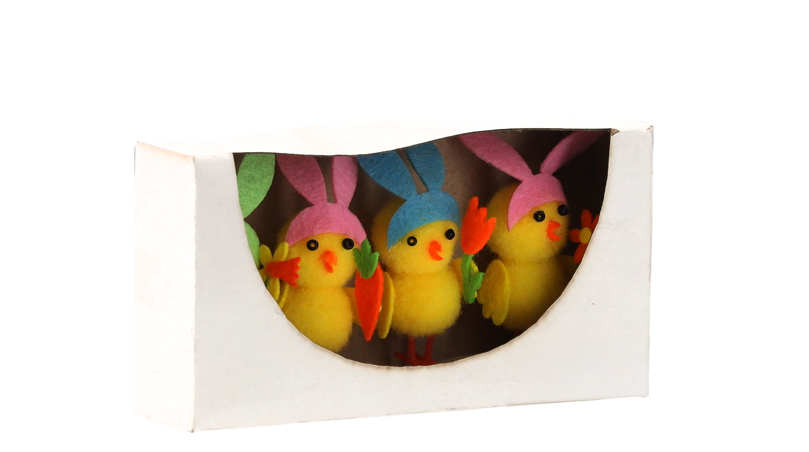 Stvorite kod kuće čarobno proljetno ozračje sa setom od četiri žuta pilića sa zečjim ušima. Ove dekoracije simboliziraju dolazak proljeća, radost i obnovu te ih lako možete uskladiti s ostalim uskršnim dodacima. Zahvaljujući izdržljivoj plastičnoj izradi, lagane su, sigurne i prikladne za višekratnu upotrebu.