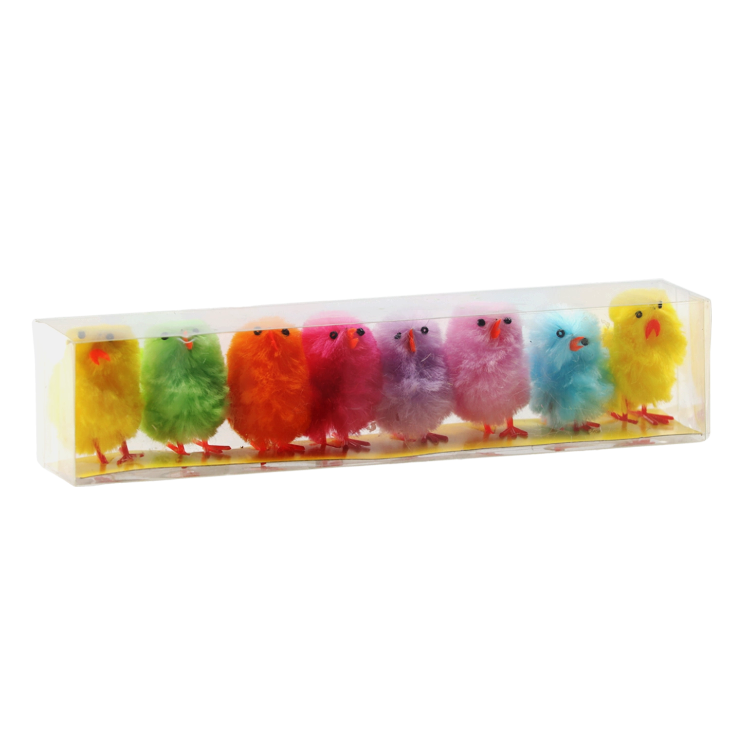 Set sadrži piliće u nekoliko živopisnih boja koji trenutno oživljavaju svaki uskrsni ili proljetni kutak.