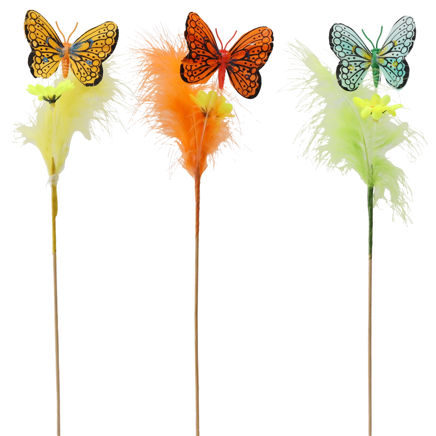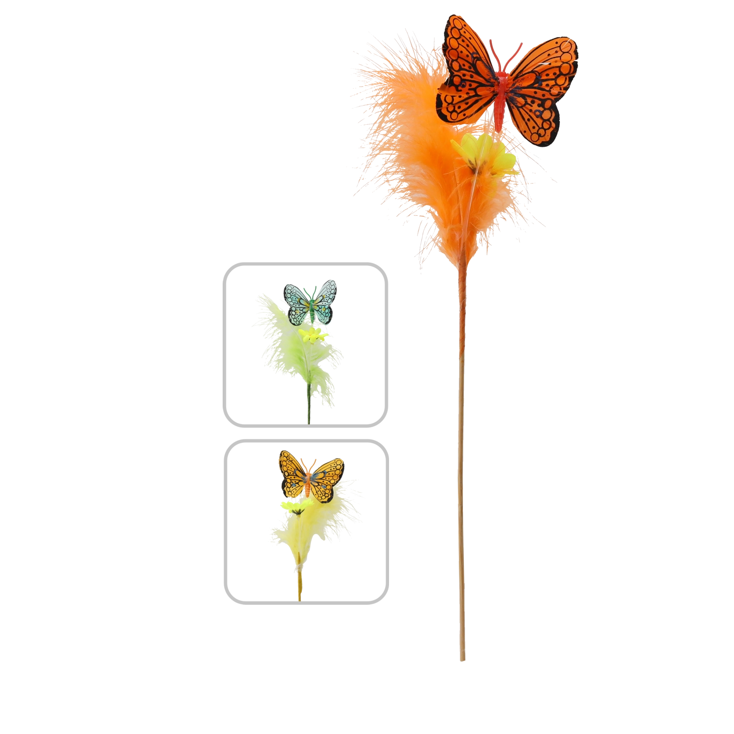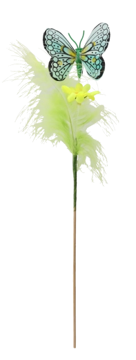 Stvorite kod kuće proljetnu atmosferu s dekoracijom leptira na štapiću ukrašenom perjem. Ovi šarmantni ukrasi u miksu 3 pastelne boje lako se uklapaju u svaki interijer i naglašavaju uskršnje uređenje. Zahvaljujući drvenom štapiću, smjestit ćete ih u trenu u cvjetne aranžmane, vijence ili košare.