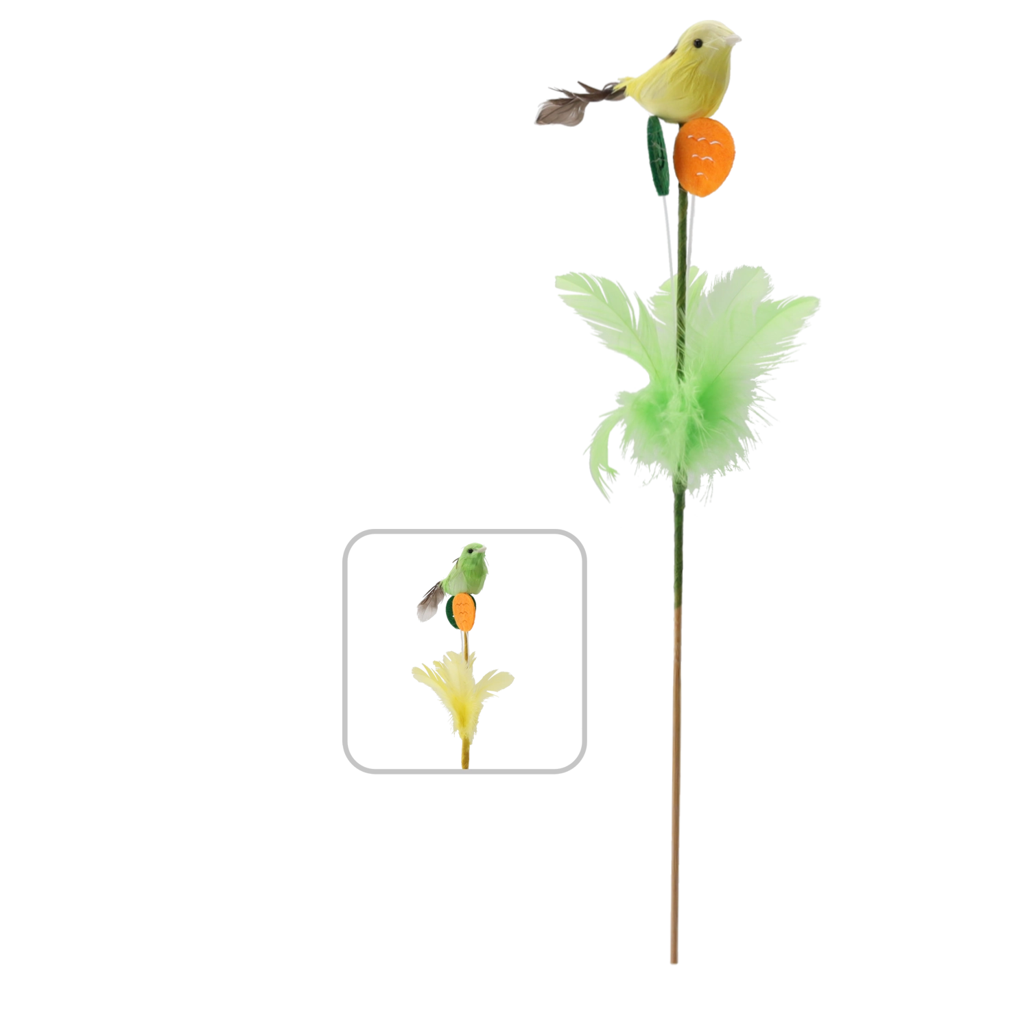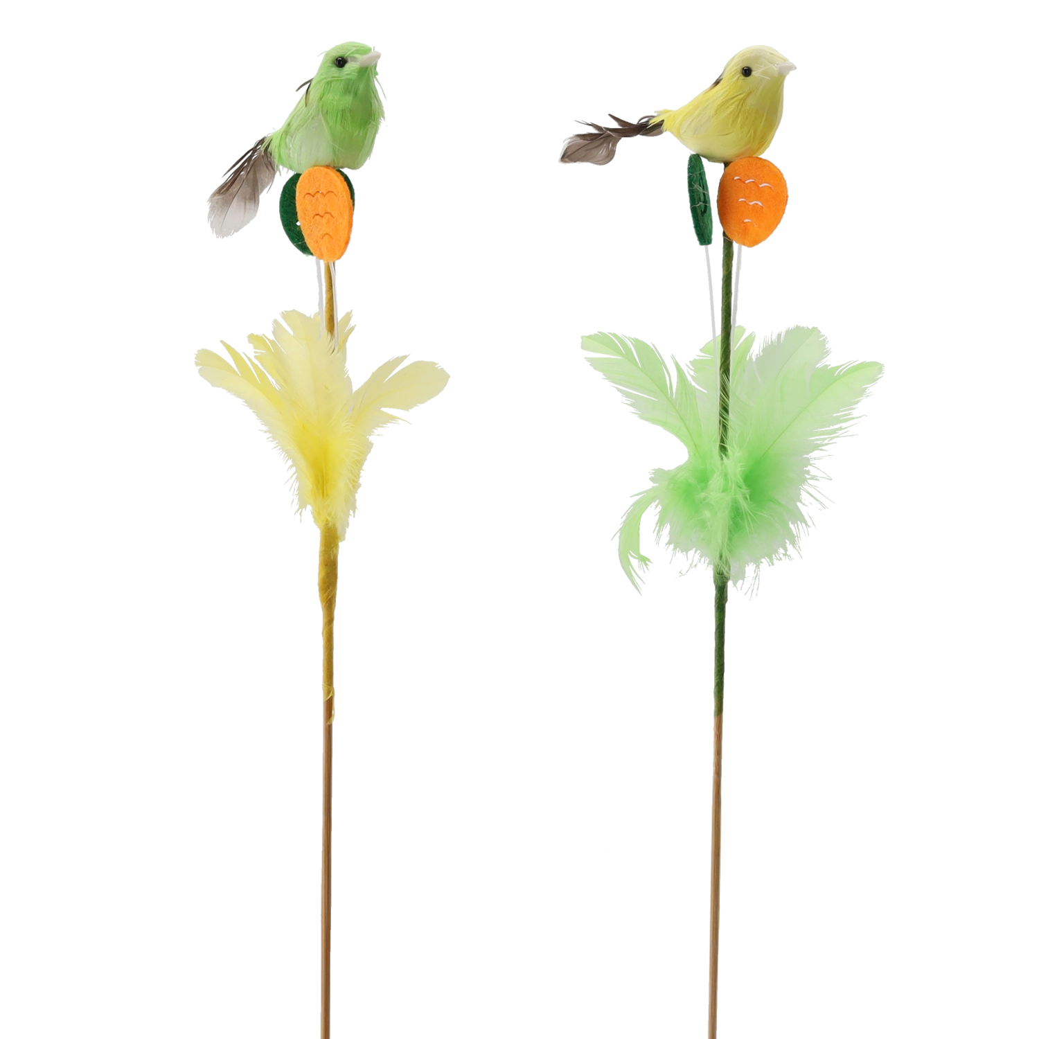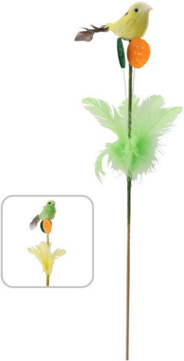 Elegantni uskrsni ukras na štapiću u obliku ptičice s perjem, dužine 30 cm, unijet će svjež proljetni ugođaj u vaš interijer. Zahvaljujući nježnom perju i realističnoj izradi djeluje prirodno te se ističe u cvjetnim aranžmanima, uskrsnim vijencima i kao samostalna dekoracija. Dostupan u dvije varijante boja, u pakiranju od 12 komada – idealno za veće projekte ili dijeljenje s najbližima.