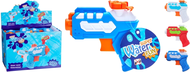 Uživajte u ljetnoj zabavi s kompaktnim vodenim pištoljem duljine 14 cm, koji je zahvaljujući svojoj veličini lako upravljiv i za mlađu djecu. Izdržljiv polipropilen jamči dug vijek trajanja, a različite boje dodaju igri zabavni element iznenađenja. Jednostavan okidački mehanizam osigurava neprekidno špricanje i sate veselja u dvorištu, na plaži ili tijekom ljetnih igara.