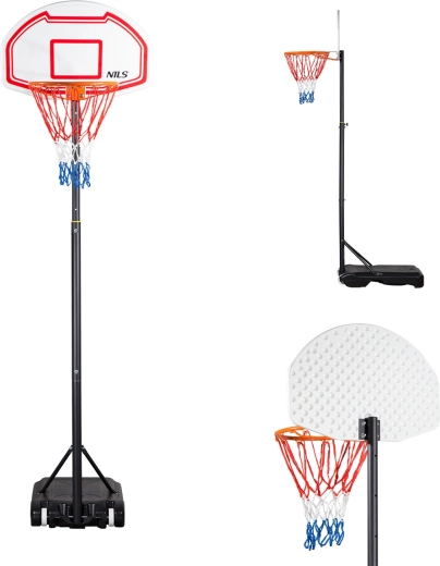 Mobilni košarkaški koš NILS ZDK018 nudi podesivu visinu obruča 1,65–2,1 m, izdržljivu PE ploču i stabilnu bazu zapremnine 28 l. Zahvaljujući transportnim kotačićima lako se premješta, a njegova izdržljiva čelična konstrukcija podnosi vanjske uvjete. Idealan za trening i rekreativnu igru.