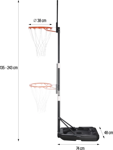 Uživajte u košarci bilo gdje s prijenosnim košem NILS ZDK001. Nudi glatko podesivu visinu 135–243 cm, udarootpornu polikarbonatnu ploču, izdržljiv čelični obruč 38 cm i stabilnu bazu s kotačićima za jednostavno premještanje. Idealan za djecu, tinejdžere i odrasle u vrtu, na prilazu ili vikendici.