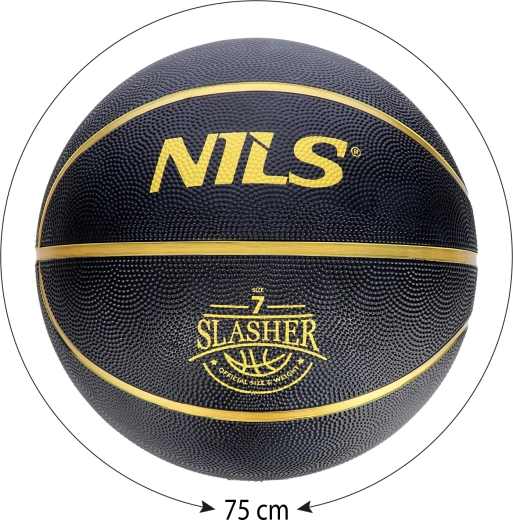Košarkaška lopta NILS Slasher u službenoj veličini 7 dizajnirana je za dinamičnu igru u interijeru i eksterijeru. Zahvaljujući teksturiranoj gumenoj površini nudi pouzdan hvat, kontrolu pri driblingu i stabilnu putanju leta pri šutu. Bezvremenski crno-zlatni dizajn naglašava osobni stil na svakom terenu.