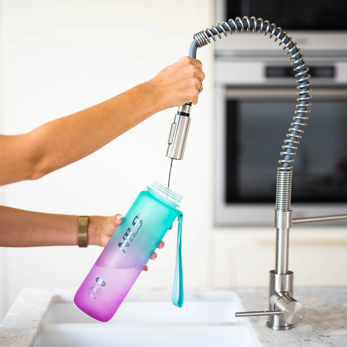 Širok grlić olakšava ulijevanje i čišćenje, a bočna ljestvica omogućuje lako praćenje koliko ste popili tijekom dana.