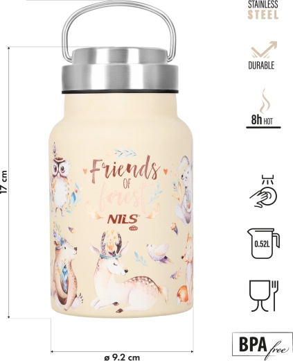 Stilna i izdržljiva termo boca NILS Camp Forest zapremnine 520 ml održava vaše napitke hladnima do 24 sata ili toplima do 8 sati. Zahvaljujući dvostrukoj izolacijskoj stijenci, nehrđajućem čeliku i nepropusnom navojnom čepu idealna je za izlete, sport i svakodnevno nošenje. Materijali su bez BPA za sigurno ispijanje bez neželjenih mirisa i okusa.