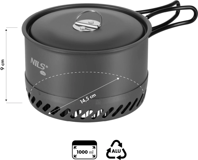 Sklopive čelične ručke sa silikonskim premazom omogućuju sigurnu manipulaciju i nakon kuhanja. Kompaktne dimenzije (Ø 14,5 cm, visina 9 cm) i masa samo 250 g štede prostor u ruksaku. Unutarnja mjerna skala olakšava precizno doziranje vode i sastojaka – idealno za solo izlete ili kao dio kamp opreme.
