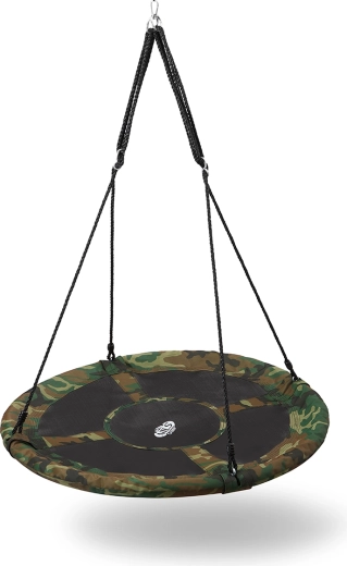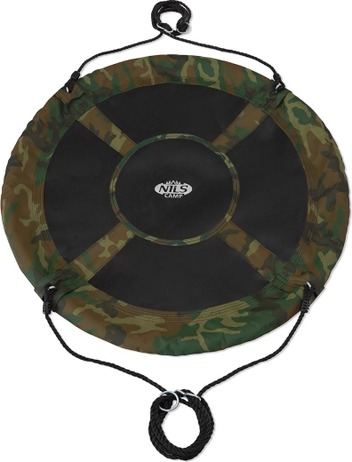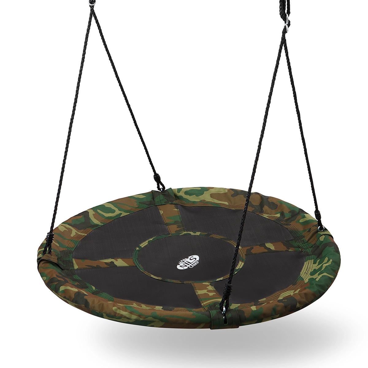 Maskirna ljuljačka roda gnijezdo NILS CAMP donosi djeci i odraslima sate aktivne zabave i relaksacije. Široko sjedalo s prozračnom mrežicom i čvrst čelični okvir s PE pjenom štite pri ljuljanju i pružaju maksimalnu udobnost. Zahvaljujući nosivosti od 150 kg i promjeru 110 cm na njoj se može ljuljati i više djece istovremeno.