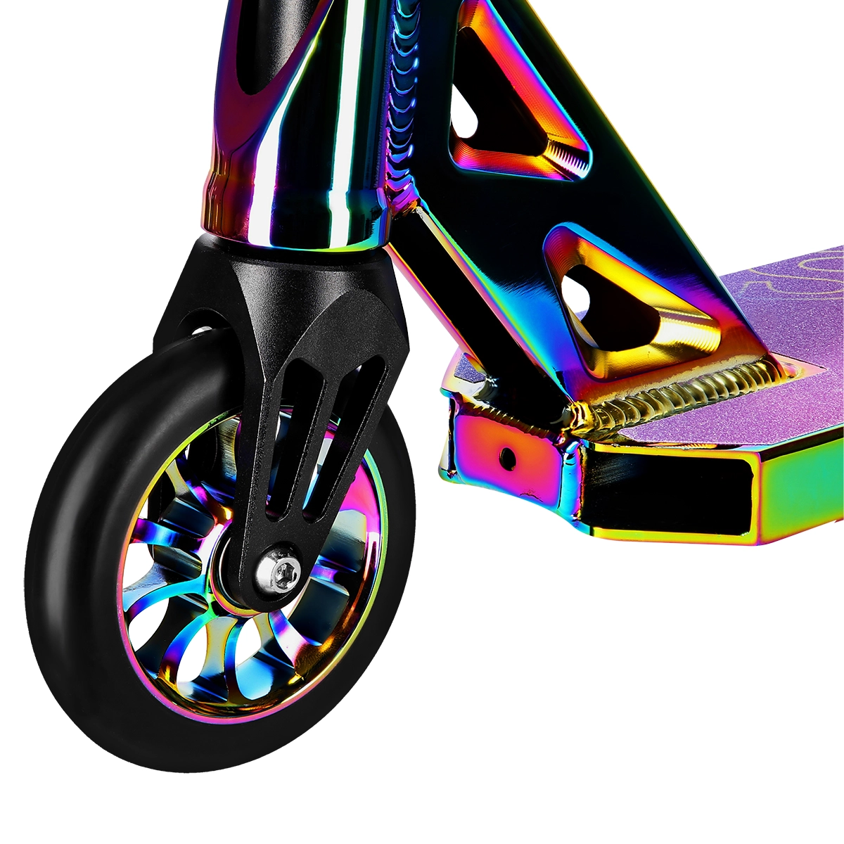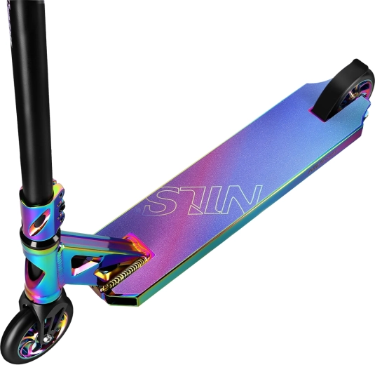 Romobil NILS Extreme HS014 Pro dizajniran je za skatepark, U-rampu i vožnju gradom. Trokamerni aluminijski deck u neokrom izvedbi i široki beznavezni upravljač s gumenim gripovima osiguravaju stabilnost, kontrolu i čvrst hvat. Zahvaljujući IHC sustavu s prešanim čašama, upravljanje je precizno i izdržljivo uz mogućnost 360° okretanja upravljača.