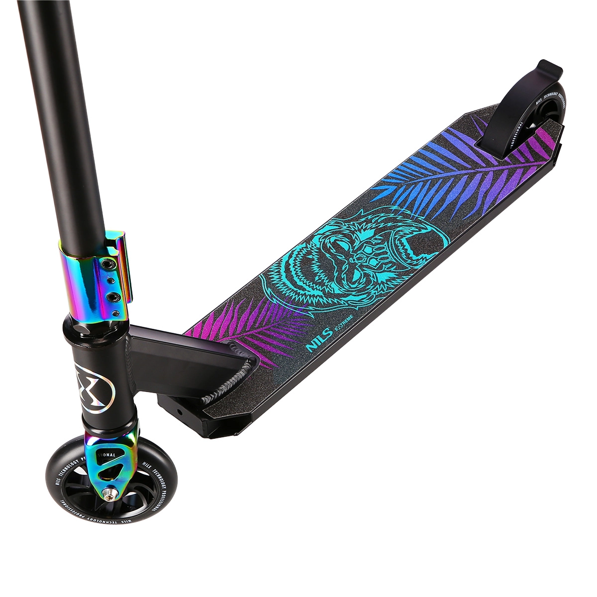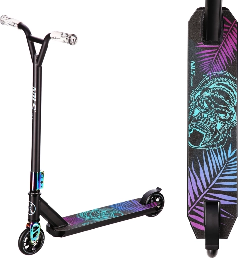 NILS Extreme Neo je pouzdan freestyle romobil za djecu, mlade i odrasle, izrađen na čvrstom aluminijskom okviru s čeličnim upravljačem. Zahvaljujući trokomornoj platformi i stezaljci s četiri vijka savladava zahtjevne trikove i svakodnevnu vožnju po asfaltu i uređenim stazama.