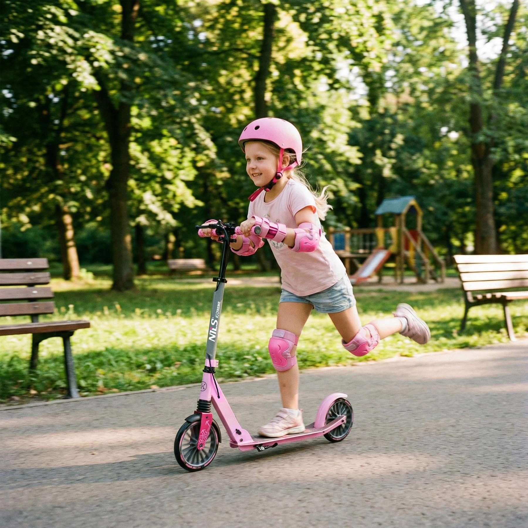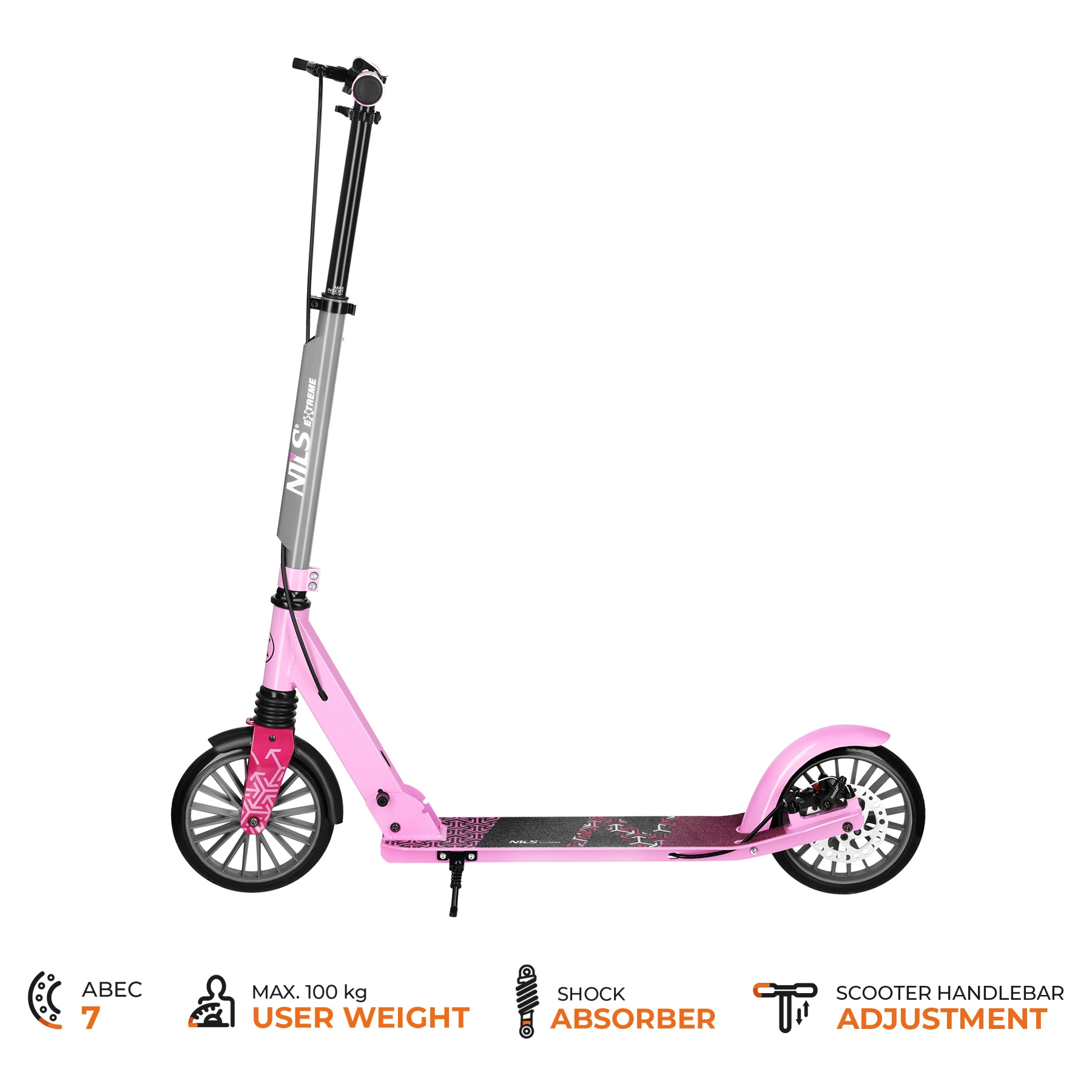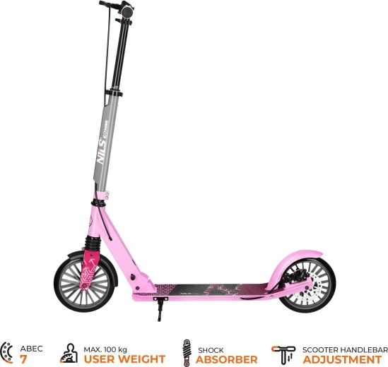 Romobil NILS Extreme LUMIA idealan je suputnik za svakodnevne prijevoze i rekreativne vožnje. Čvrsta kombinacija aluminija i čelika zadržava nisku masu, dok prednji ovjes ublažava neravnine. Protuklizna platforma i meke ručke povećavaju sigurnost i udobnost.