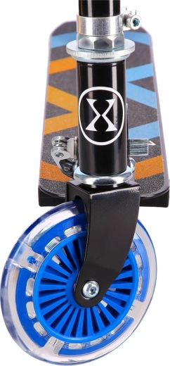 Lagani i izdržljivi sklopivi romobil za djecu i mlade s LED svjetlećim kotačima i osvijetljenom platformom. Nudi visinski podesivo upravljačko rame u 4 položaja, brzo sklapanje za lako prenošenje i glatku vožnju zahvaljujući ležajevima ABEC 5. Idealan za asfalt i utvrđene pločnike, s nosivošću 50 kg i težinom samo 2,3 kg.
