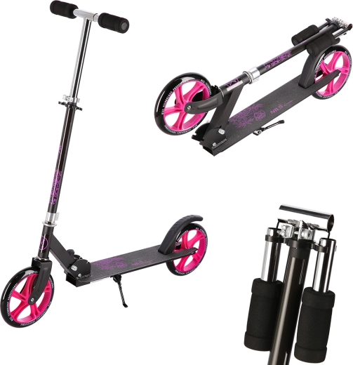 Veliki PU kotači od 200 mm s ležajevima ABEC 7 garantiraju brzu, glatku i stabilnu vožnju po asfaltu i kaldrmi. Stražnja nožna kočnica pruža trenutačnu kontrolu brzine, a sklopiva stajalica omogućuje da roler udobno odložite bez polaganja na tlo. Nosivost do 100 kg obradovat će i mlađe i odrasle rekreativne vozače.