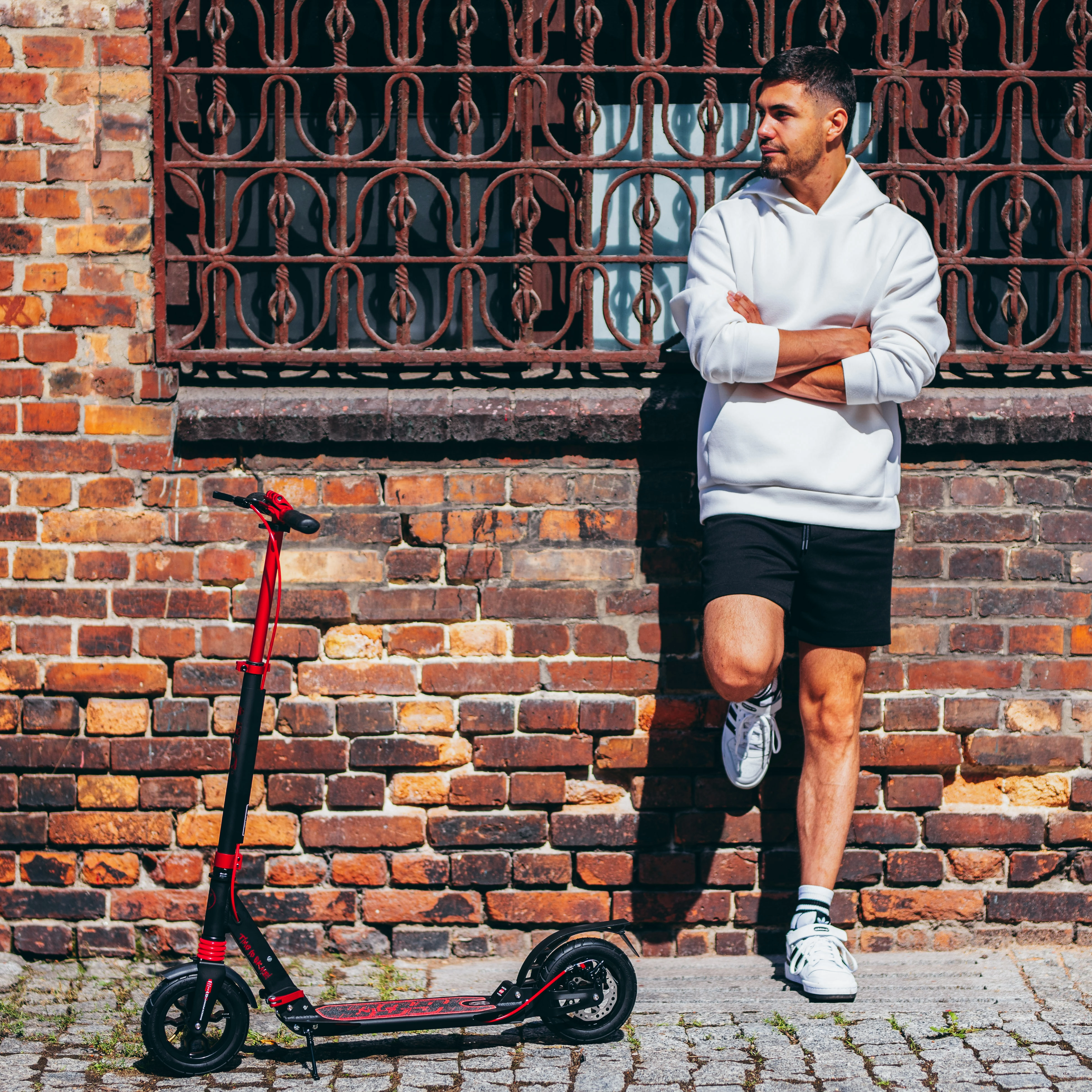 Za maksimalnu sigurnost stražnji kotač opremljen je disk kočnicom te i nožnom kočnicom s integriranim reflektorom za bolju vidljivost u sumrak. Podesiva visina upravljača i ergonomske gumene ručke osiguravaju udobno držanje i pri dužim vožnjama. Romobil lako sklopite na kompaktne dimenzije, a zahvaljujući odvojivom ramenom remenu udobno ga prenesete u javnom prijevozu, automobilu ili pohranite kod kuće.